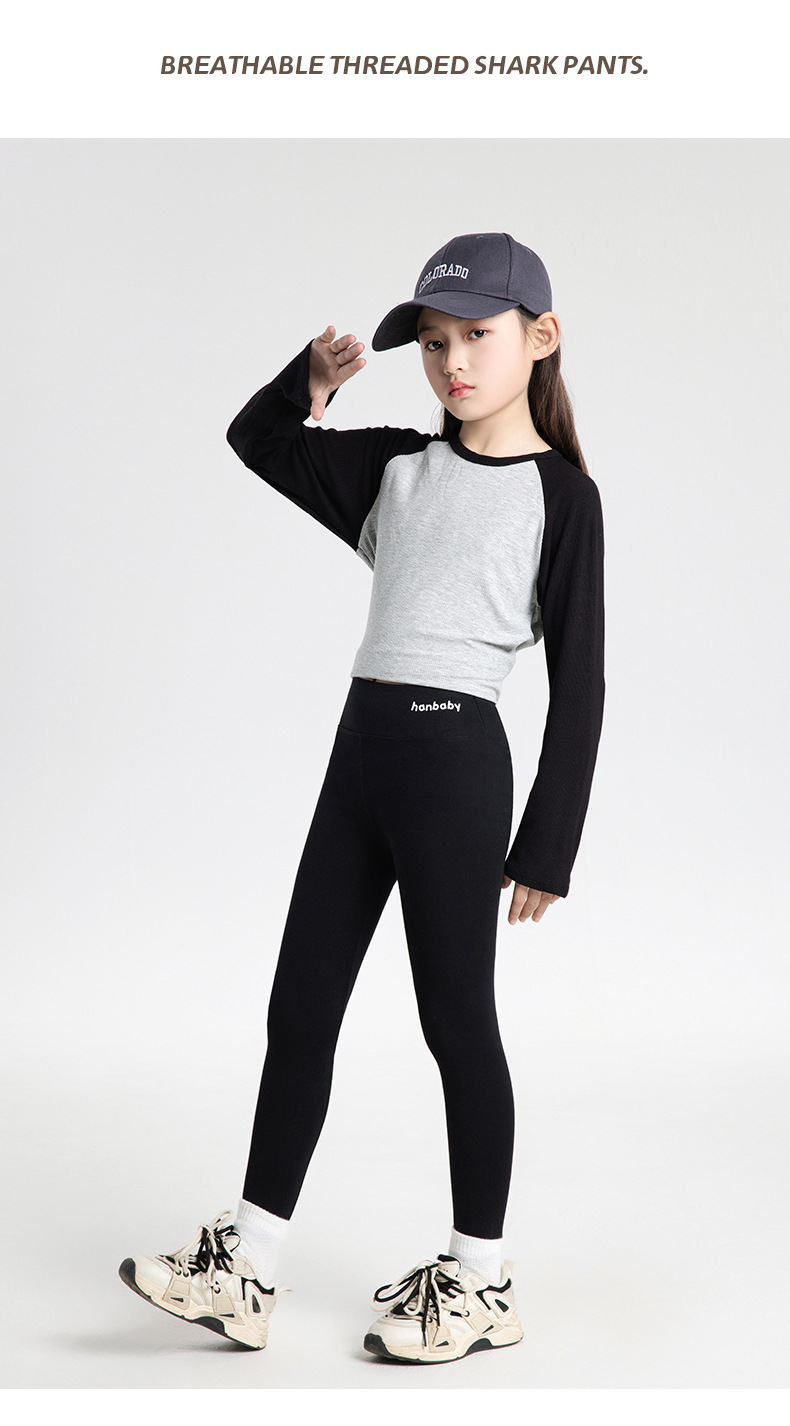 아동용 레깅스, 가을 겨울 벨벳 따뜻한 여아 샤크 팬츠, 9부 팬츠, 면 비볼링 요가 팬츠, 아우터 팬츠