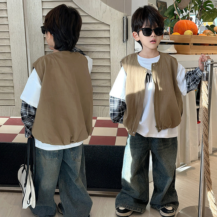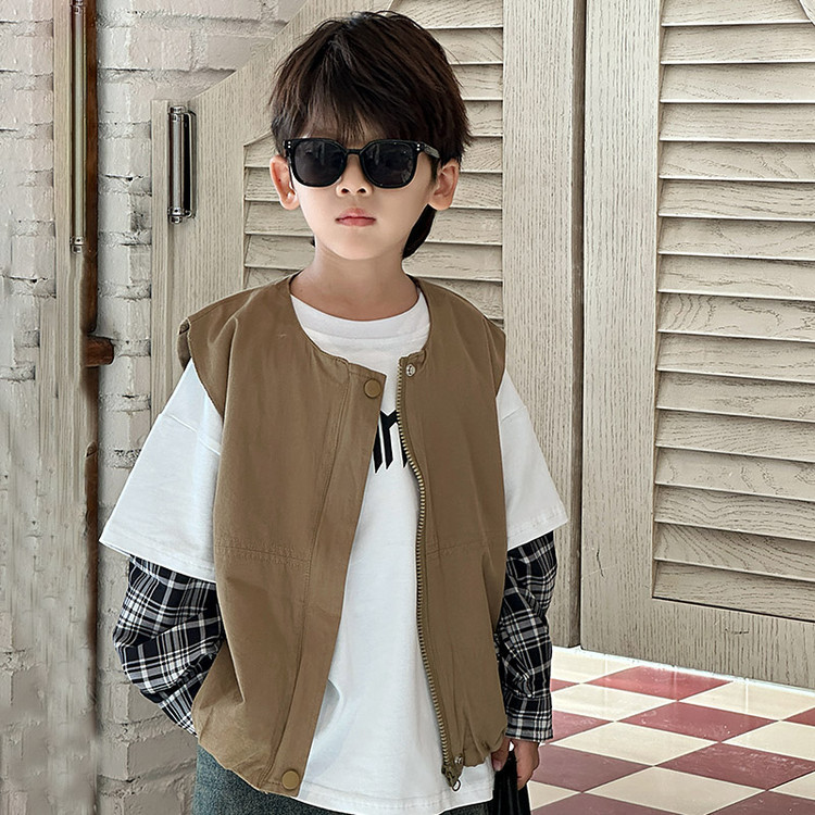 7644 남아 조끼 봄 가을 스타일 아동용 민소매 카키색 코트 봄옷 스타일리쉬 조끼 2026 신상스토어 가기