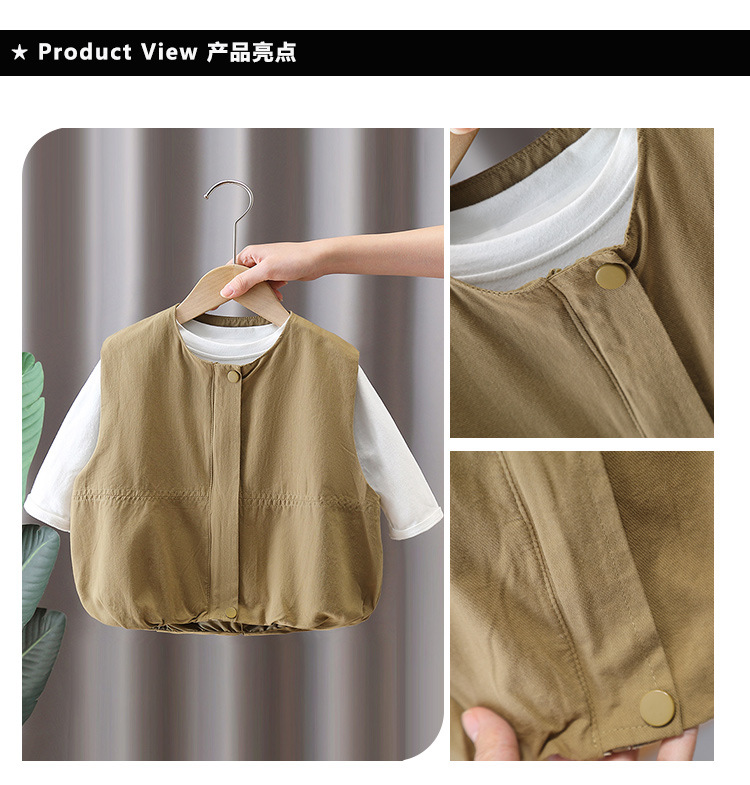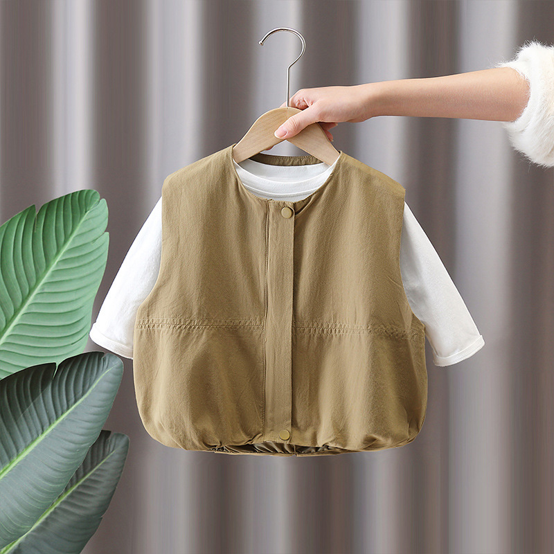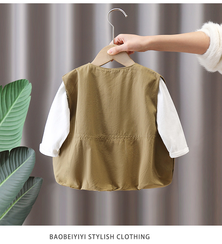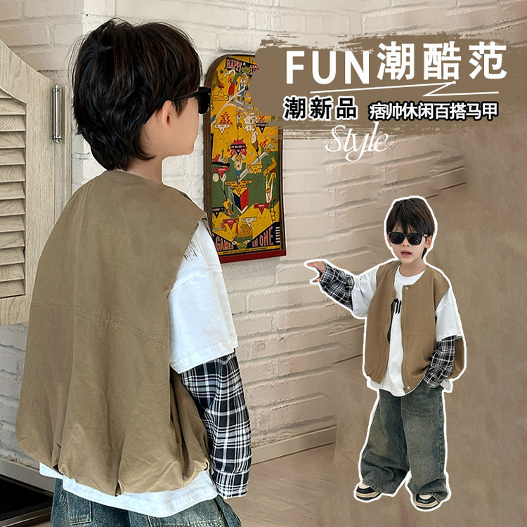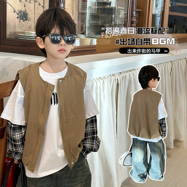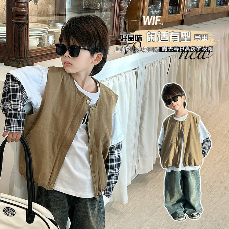 7644 남아 조끼 봄 가을 스타일 아동용 민소매 카키색 코트 봄옷 스타일리쉬 조끼 2026 신상