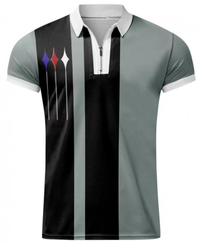 여름 유럽과 미국의 트렌드 남성 지퍼 옷깃 폴로 셔츠 패션 3D 인쇄 짧은 소매 골프 셔츠 공장 직접 판매