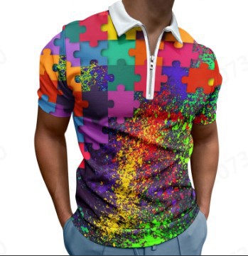 여름 유럽과 미국의 트렌드 남성 지퍼 옷깃 폴로 셔츠 패션 3D 인쇄 짧은 소매 골프 셔츠 공장 직접 판매스토어 가기