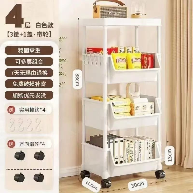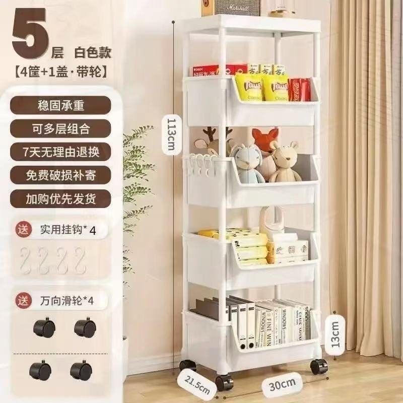 小推车收纳置物架家用落地多层零食收纳架带轮卧室儿童房简易书架