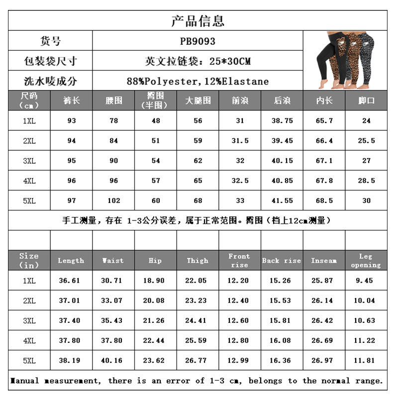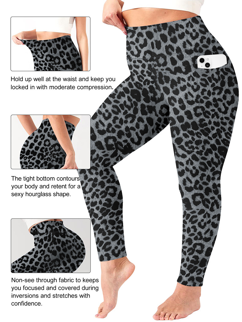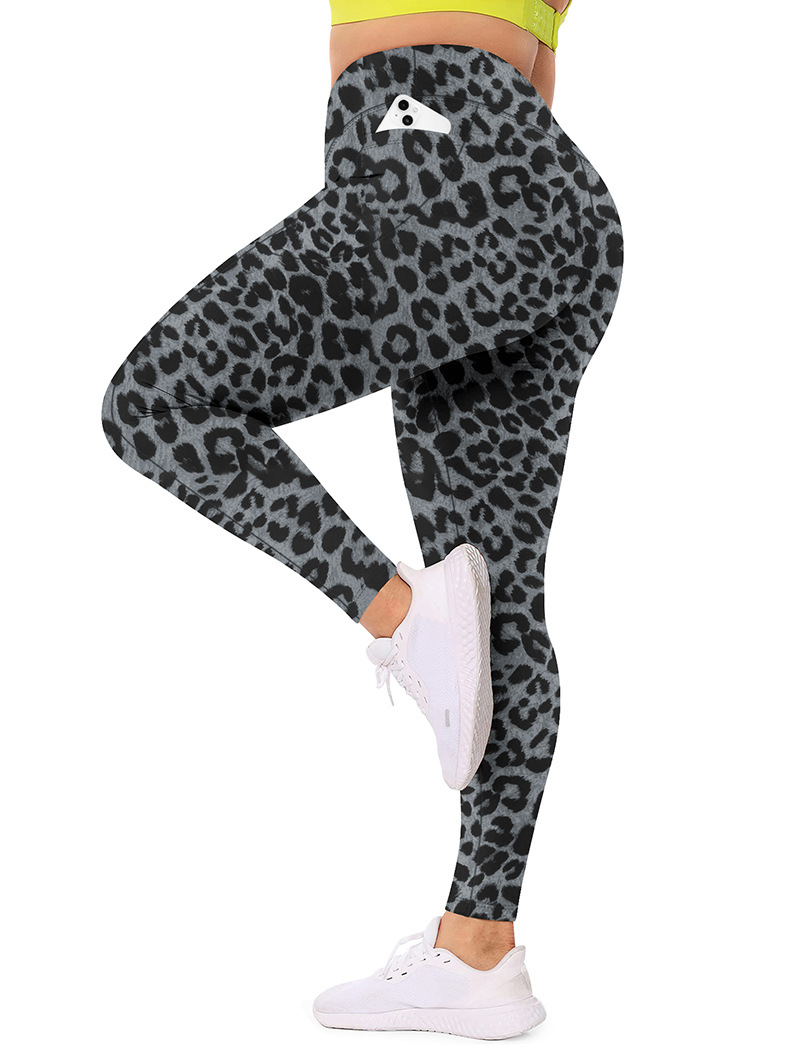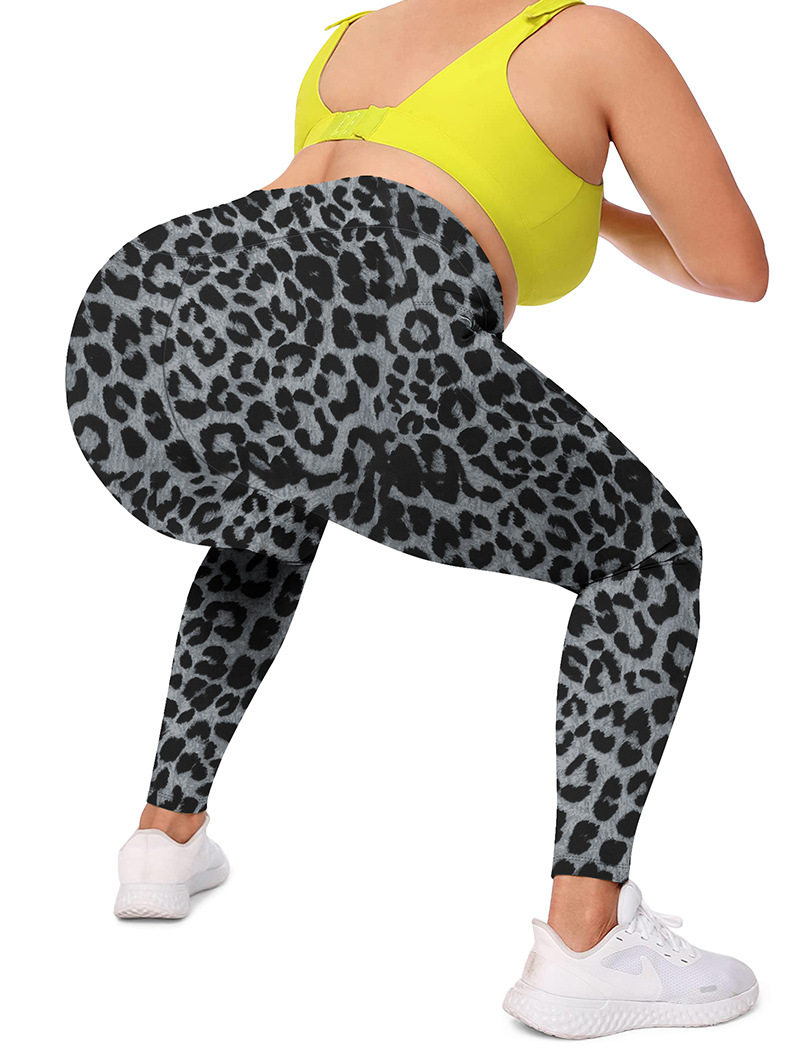 국경을 넘나 드는 플러스 사이즈 요가 바지 유럽과 미국의 레오파드 무늬 높은 허리 섹시한 달리기 스포츠 타이트 바지 여성의 엉덩이 리프팅 및 땀을 흘리는 레깅스