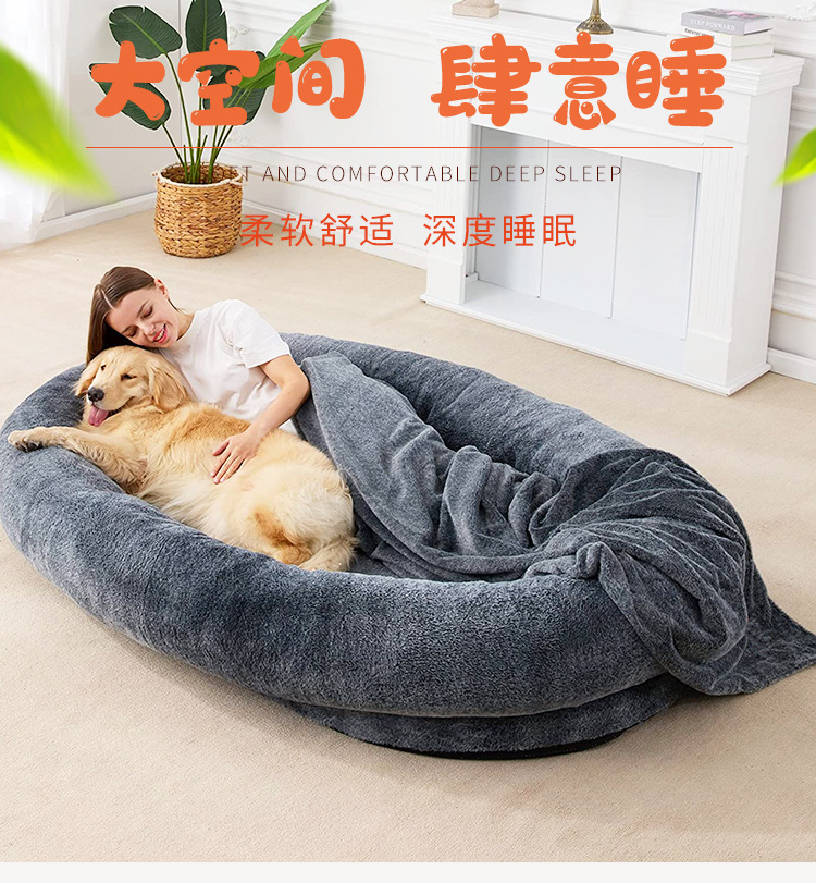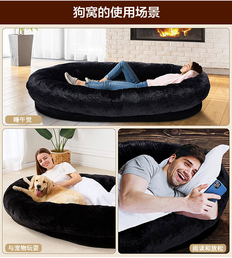 인간을위한 개 침대 큰 인간 짧은 봉제 개 침대 성인 개 사육장 제거 가능하고 빨 수있는 애완 동물 사육장