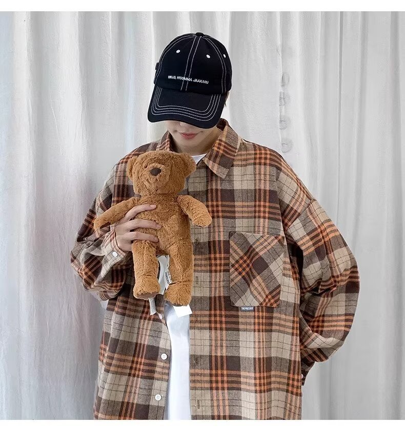 봄과 가을 격자 무늬 긴 소매 셔츠 남자의 느슨한 한국 스타일 유행 학생 카디건 캐주얼 레트로 외부 착용 격자 무늬 셔츠 재킷스토어 가기
