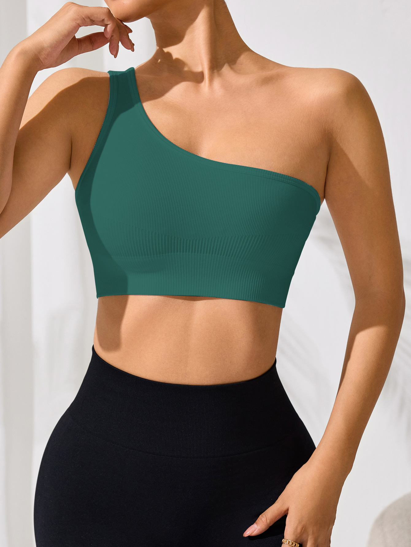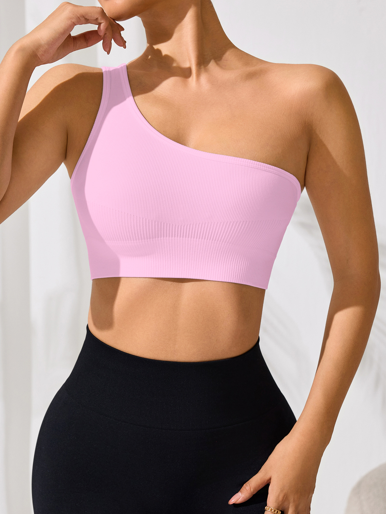 오프 숄더 섹시한 싱글 숄더 스트랩 스포츠 조끼 여성 요가 피트니스 타이트한 단색 러닝 속옷 봄과 여름