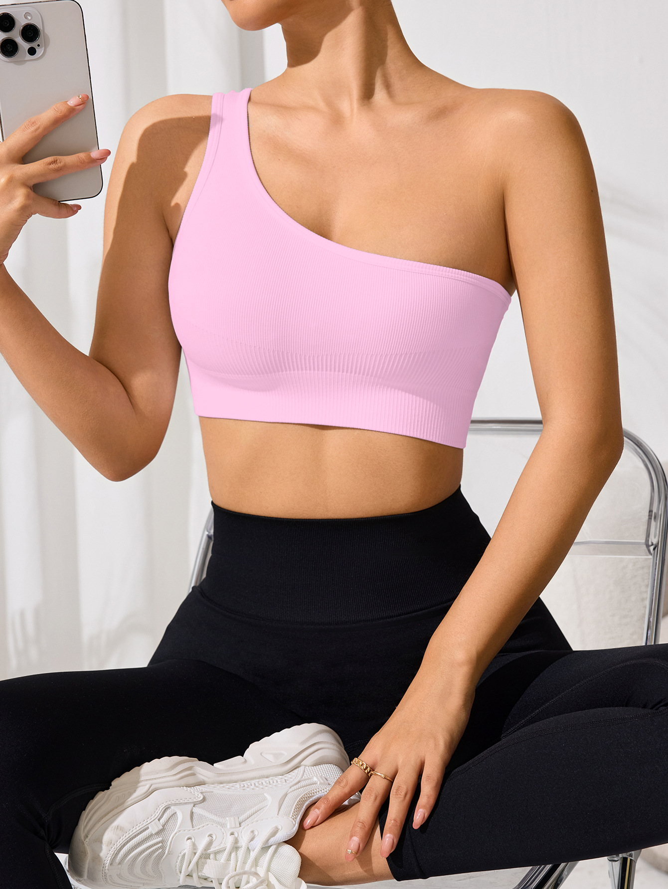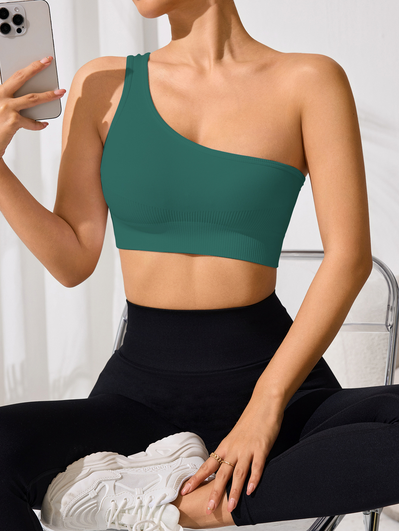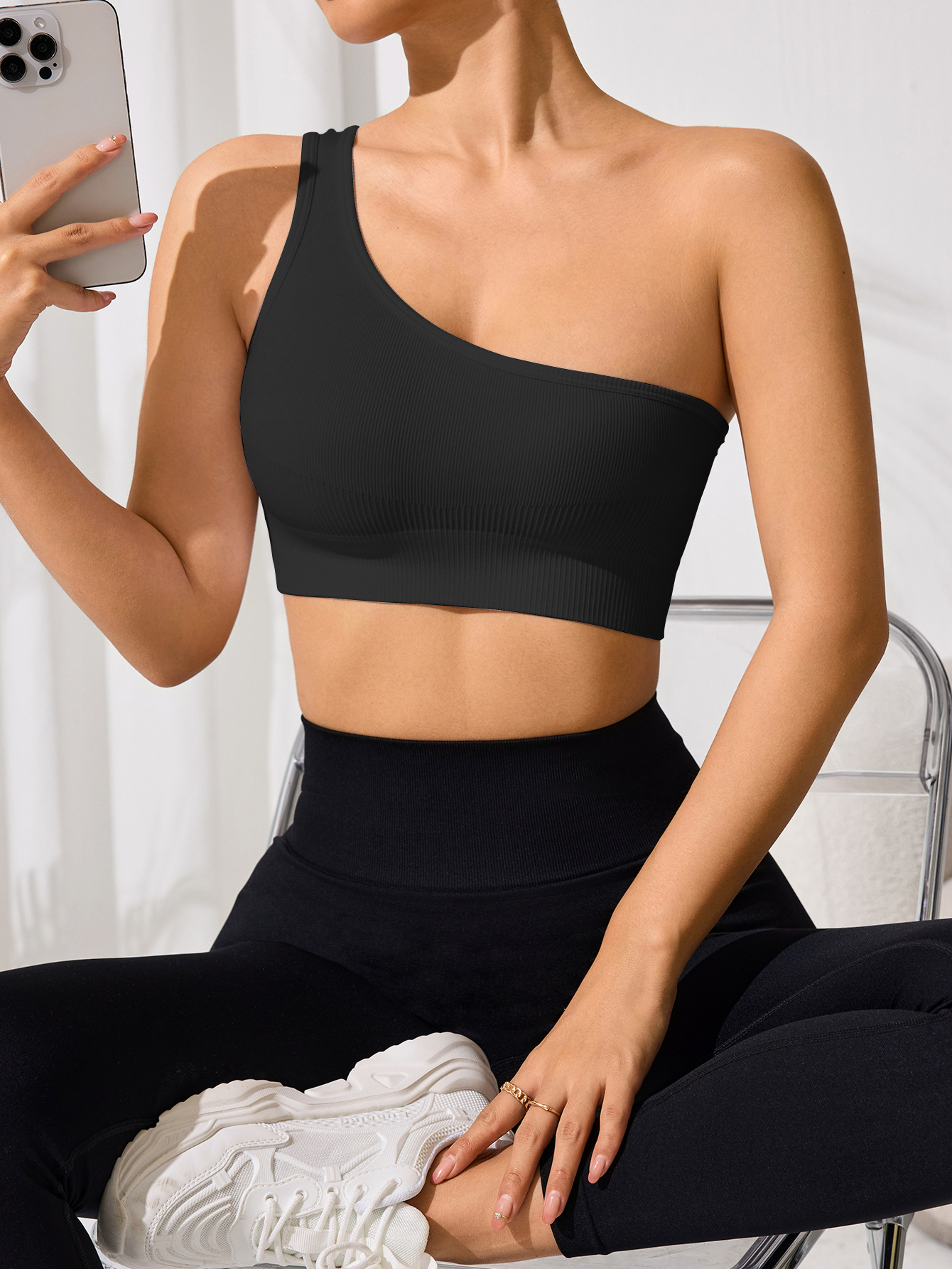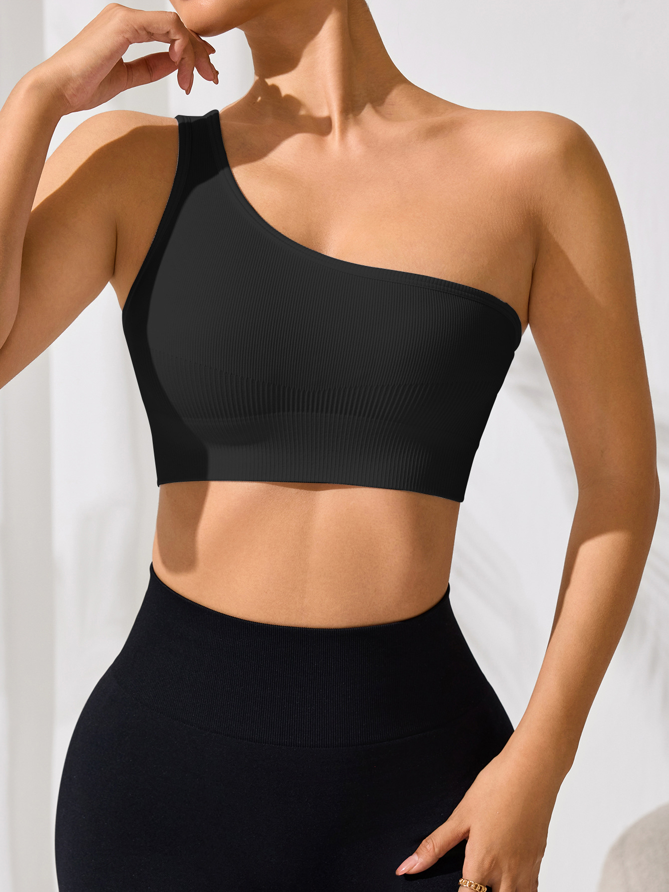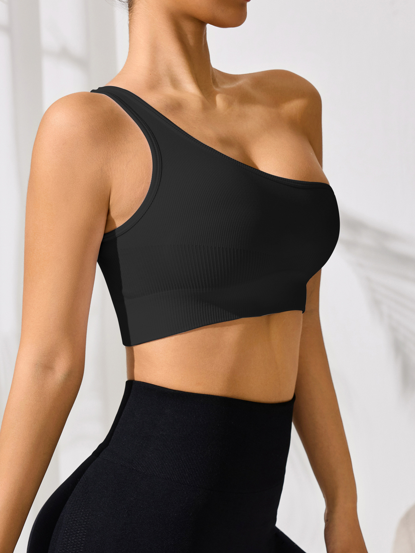 오프 숄더 섹시한 싱글 숄더 스트랩 스포츠 조끼 여성 요가 피트니스 타이트한 단색 러닝 속옷 봄과 여름스토어 가기