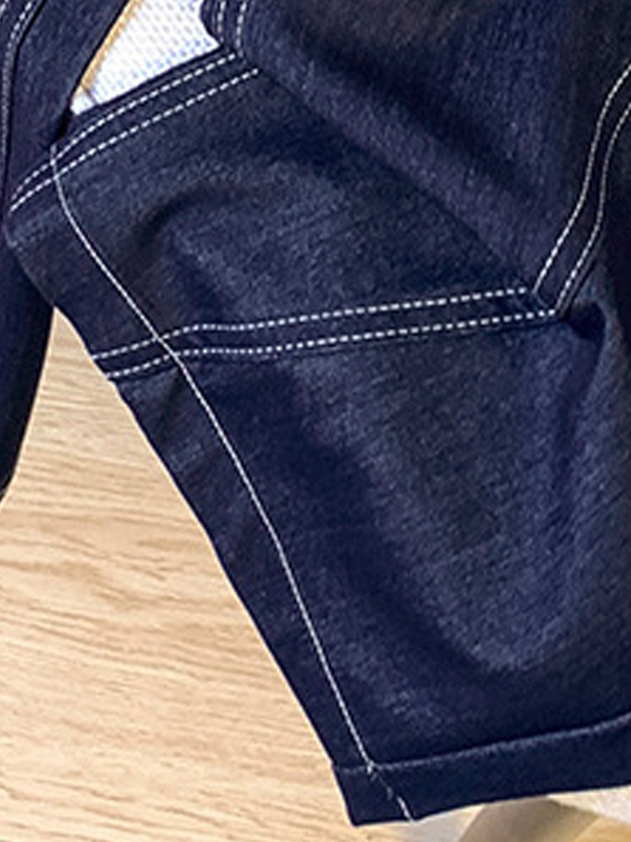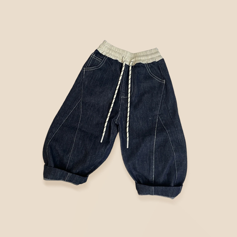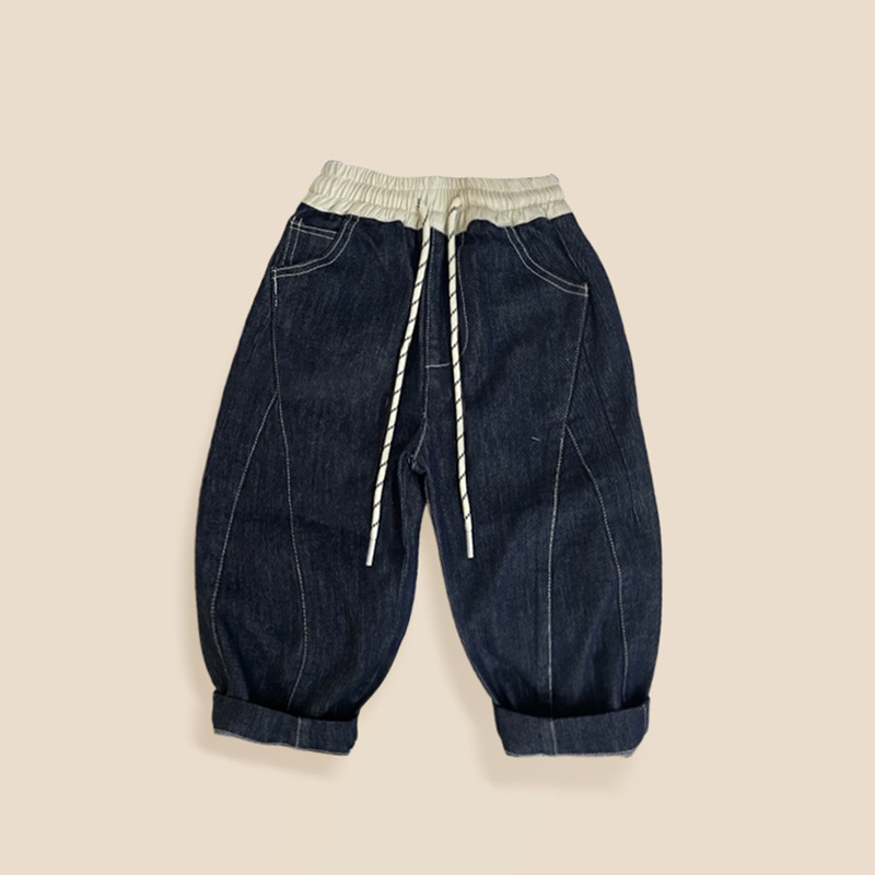 아동용 긴바지 2026 봄 신상 남녀공용 배색 한국 스타일 캐주얼 팬츠 아기용 드로스트링 스트레이트 데님 팬츠 트렌디
