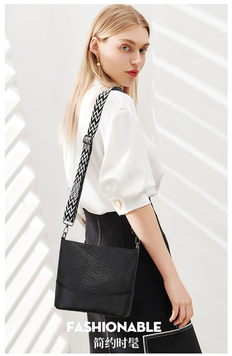 국경 간 여성 가방 넓은 어깨 스트랩 웨빙 백 2025 새로운 도착 악어 패턴 유행 새로운 도착 어깨 가방 여성 버킷 백스토어 가기