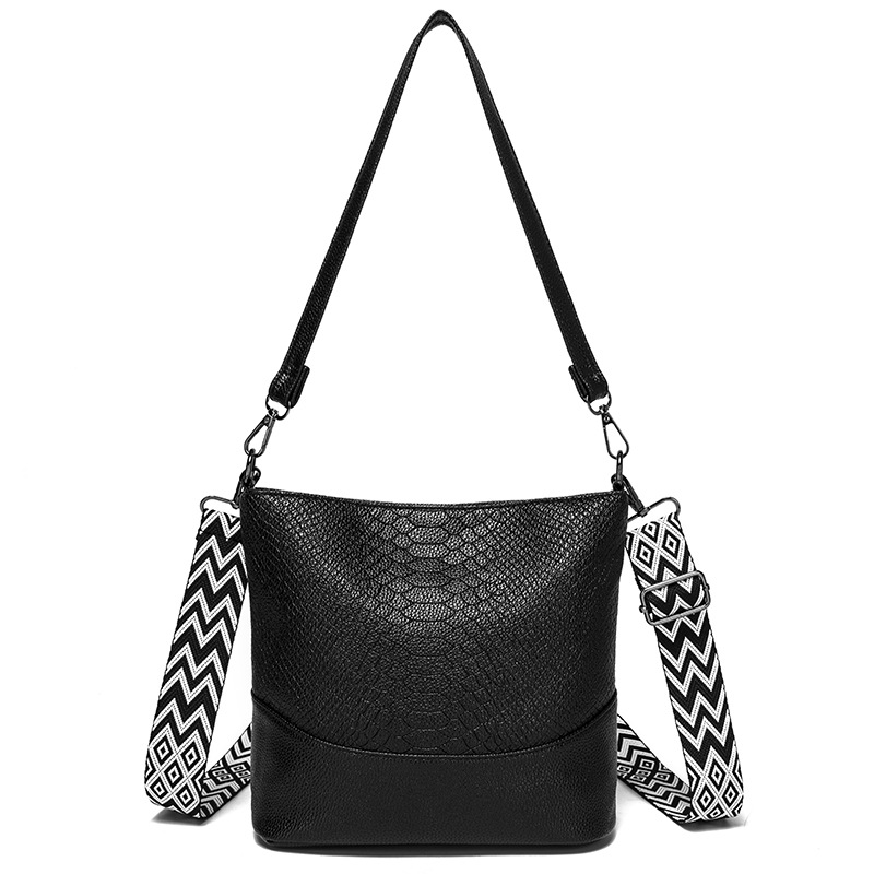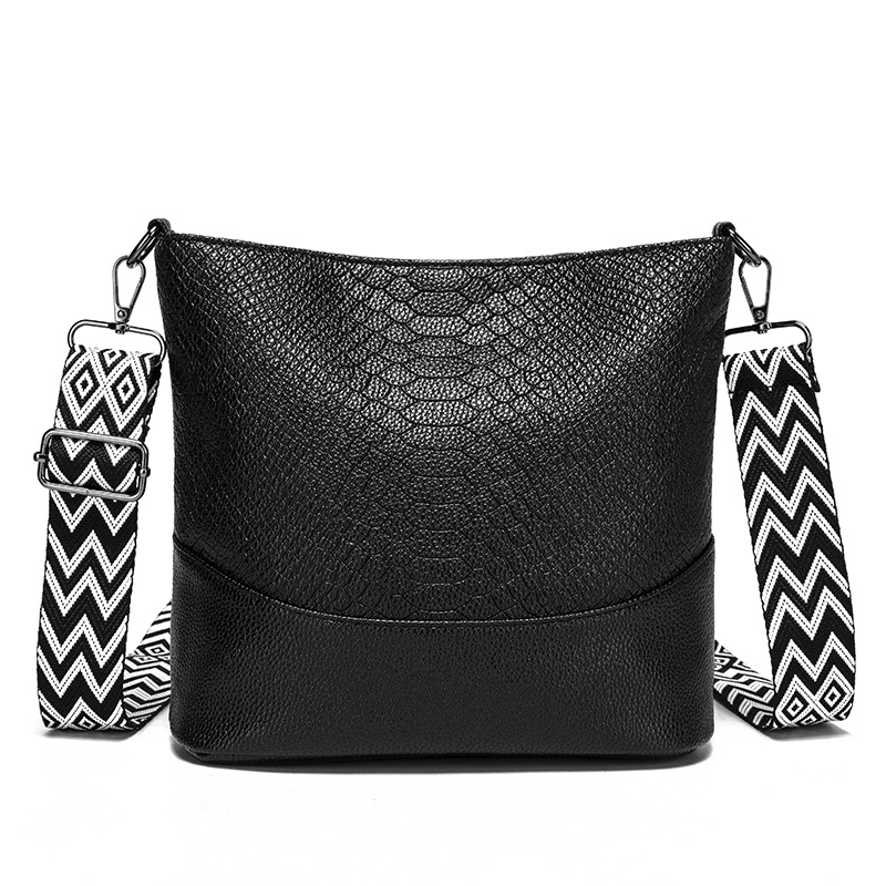 국경 간 여성 가방 넓은 어깨 스트랩 웨빙 백 2025 새로운 도착 악어 패턴 유행 새로운 도착 어깨 가방 여성 버킷 백