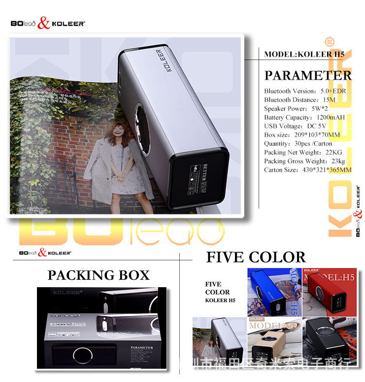 KOLEER 시리즈 SU-H5 높은 색상 값 클래식 컬러 서브 우퍼 휴대용 블루투스 오디오