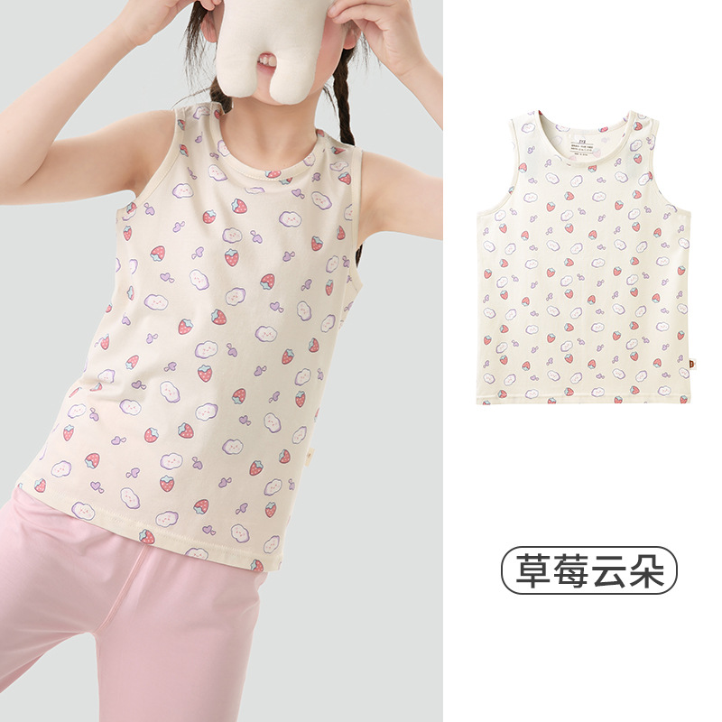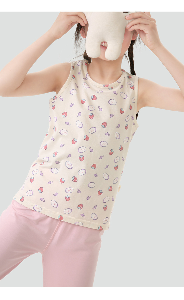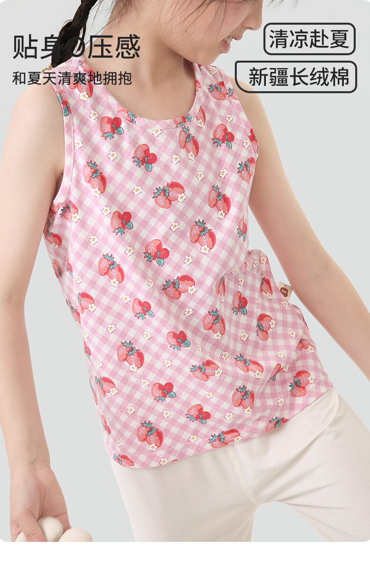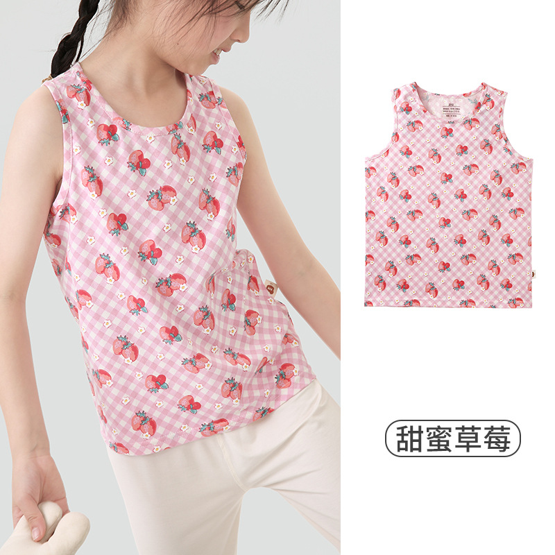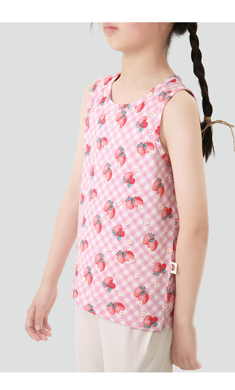 J192 디자이너 소녀의 조끼 여름 격자 무늬 딸기 홈 퓨어 코튼 클래스 A 어린이 조끼