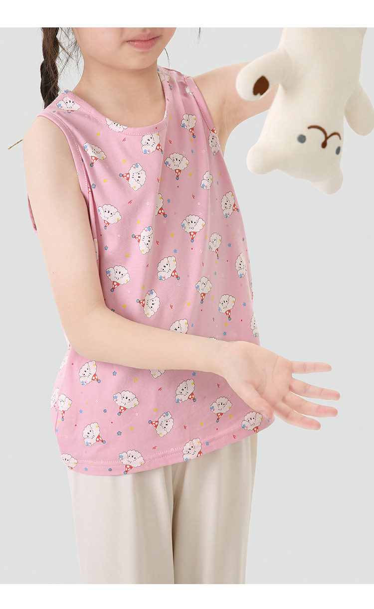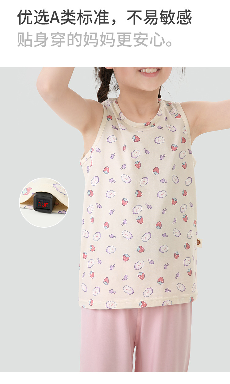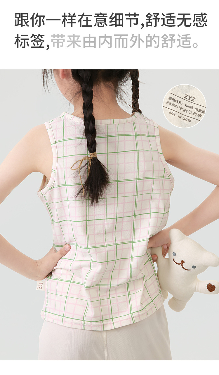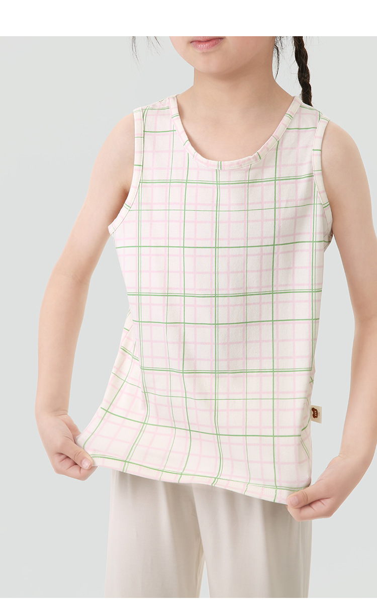 J192 디자이너 소녀의 조끼 여름 격자 무늬 딸기 홈 퓨어 코튼 클래스 A 어린이 조끼