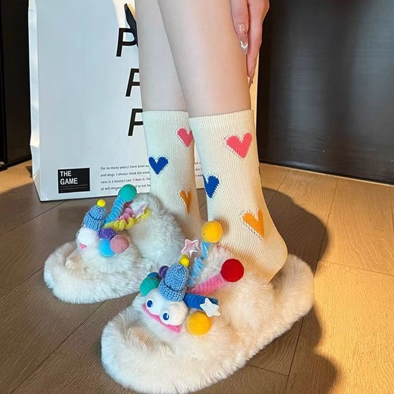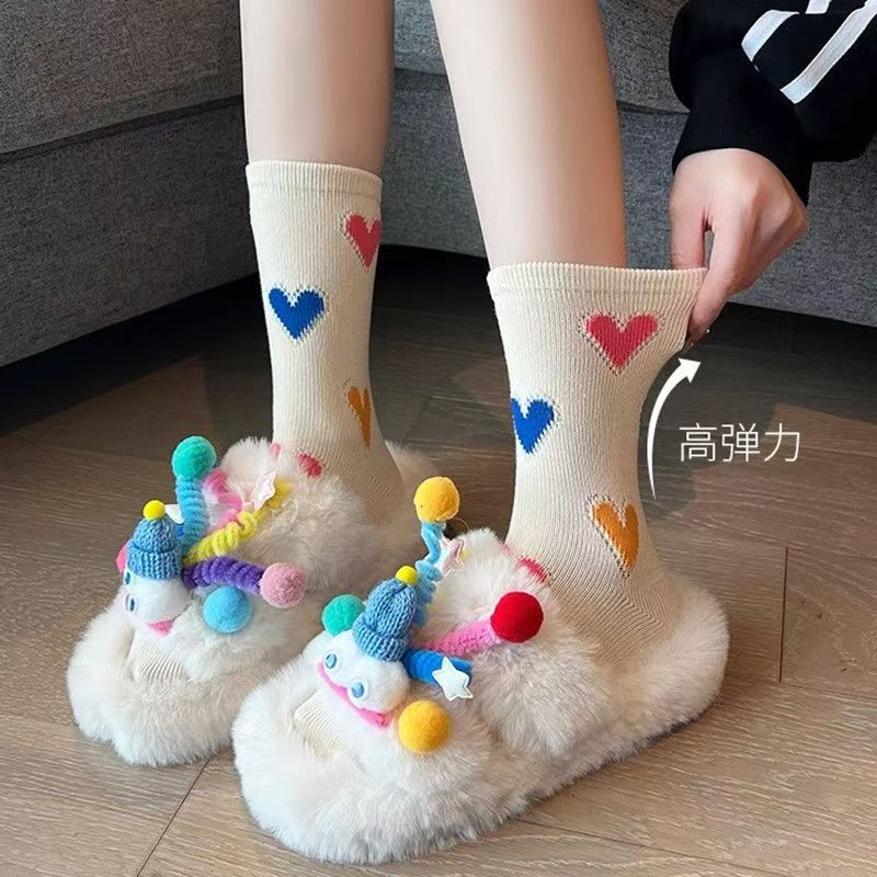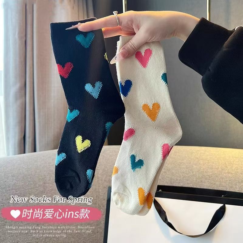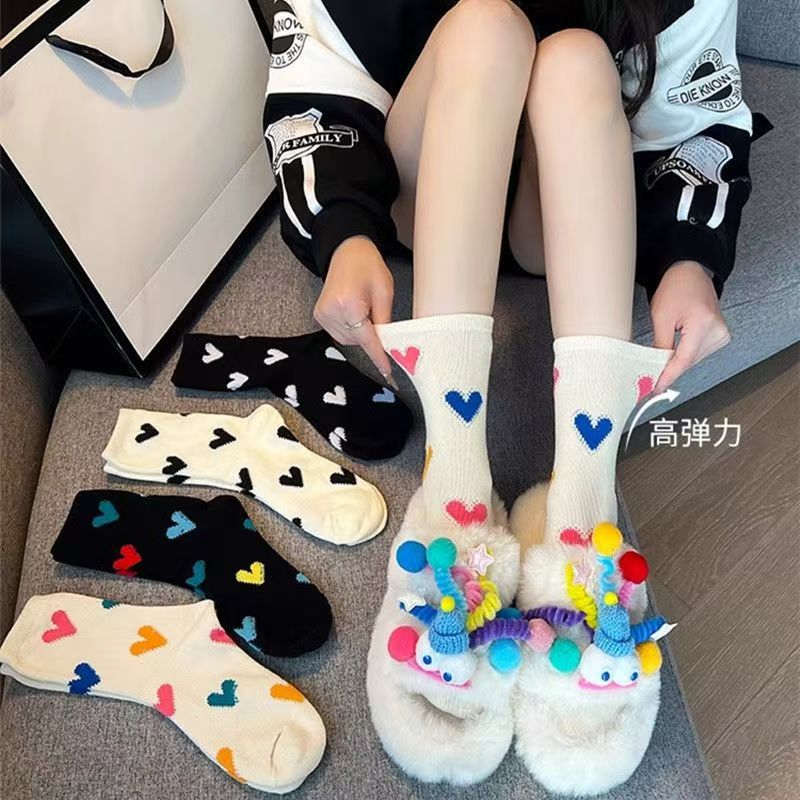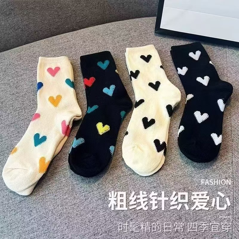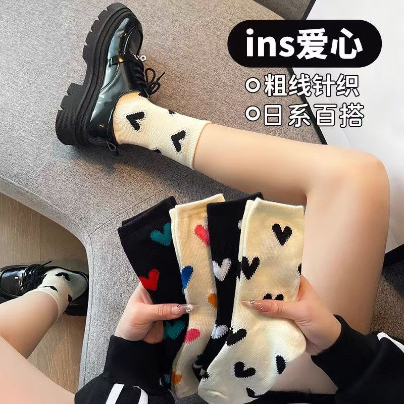 한국 스타일 인스타그램 스타일 유행 올 매치 러브 컬러 매치 미드 사이즈 양말 일본식 레트로 두꺼운 라인 3 차원 사랑 소녀 스택 양말
