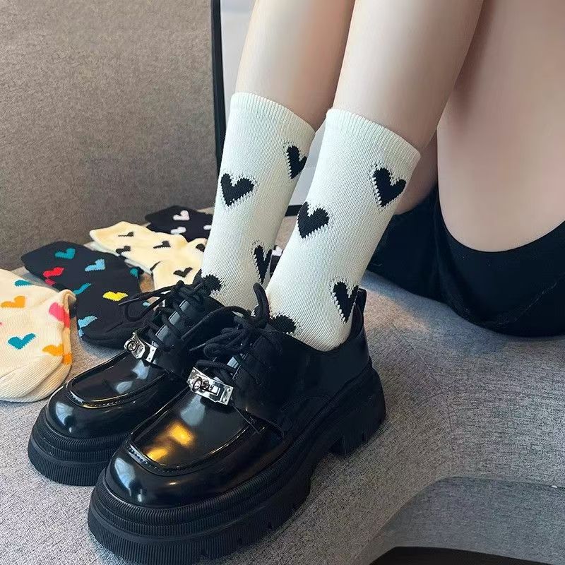 한국 스타일 인스타그램 스타일 유행 올 매치 러브 컬러 매치 미드 사이즈 양말 일본식 레트로 두꺼운 라인 3 차원 사랑 소녀 스택 양말스토어 가기