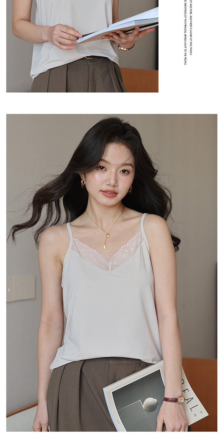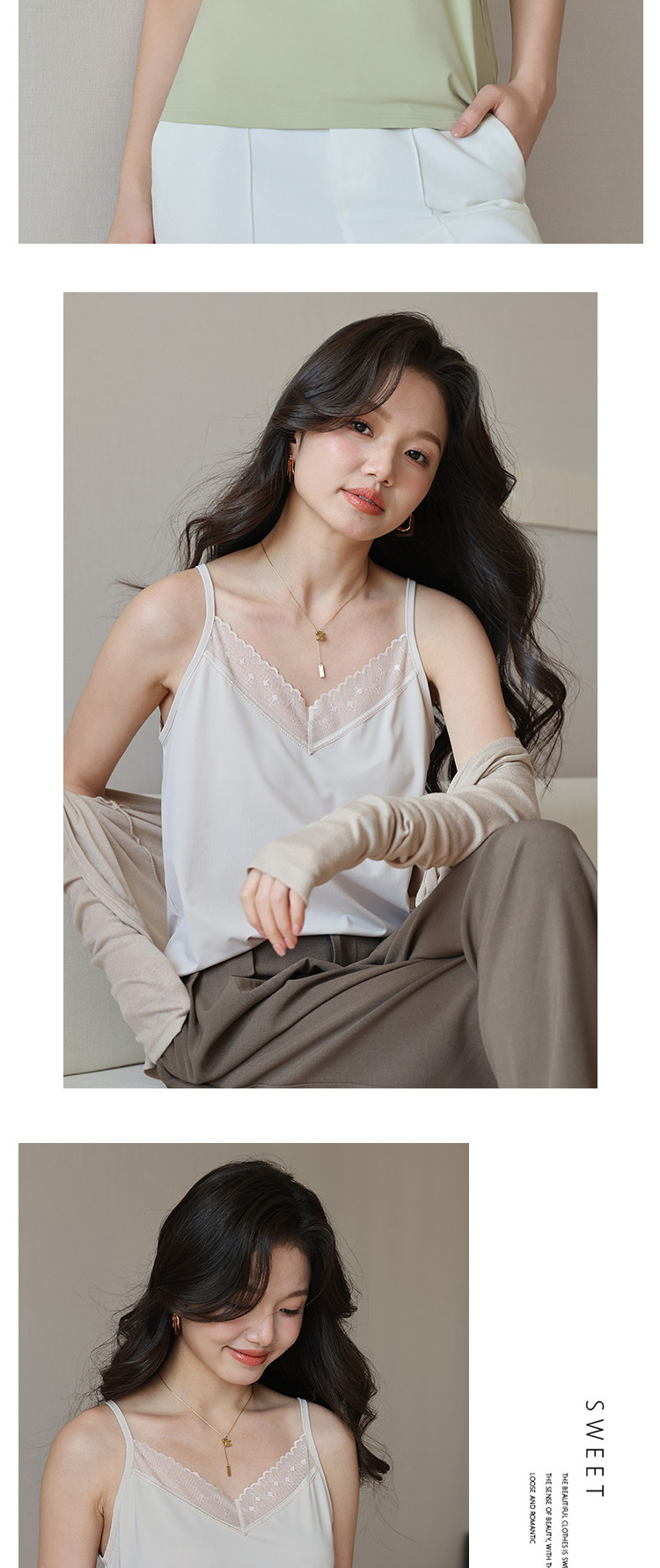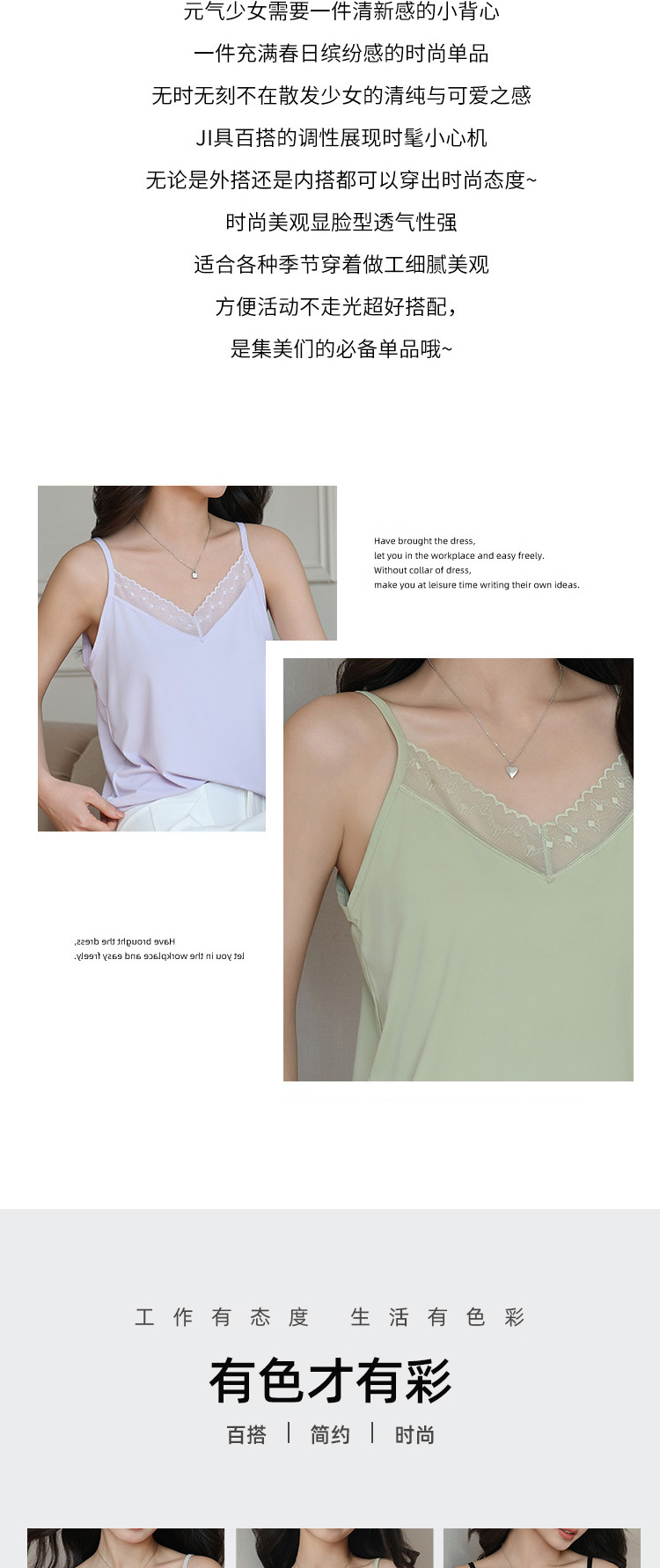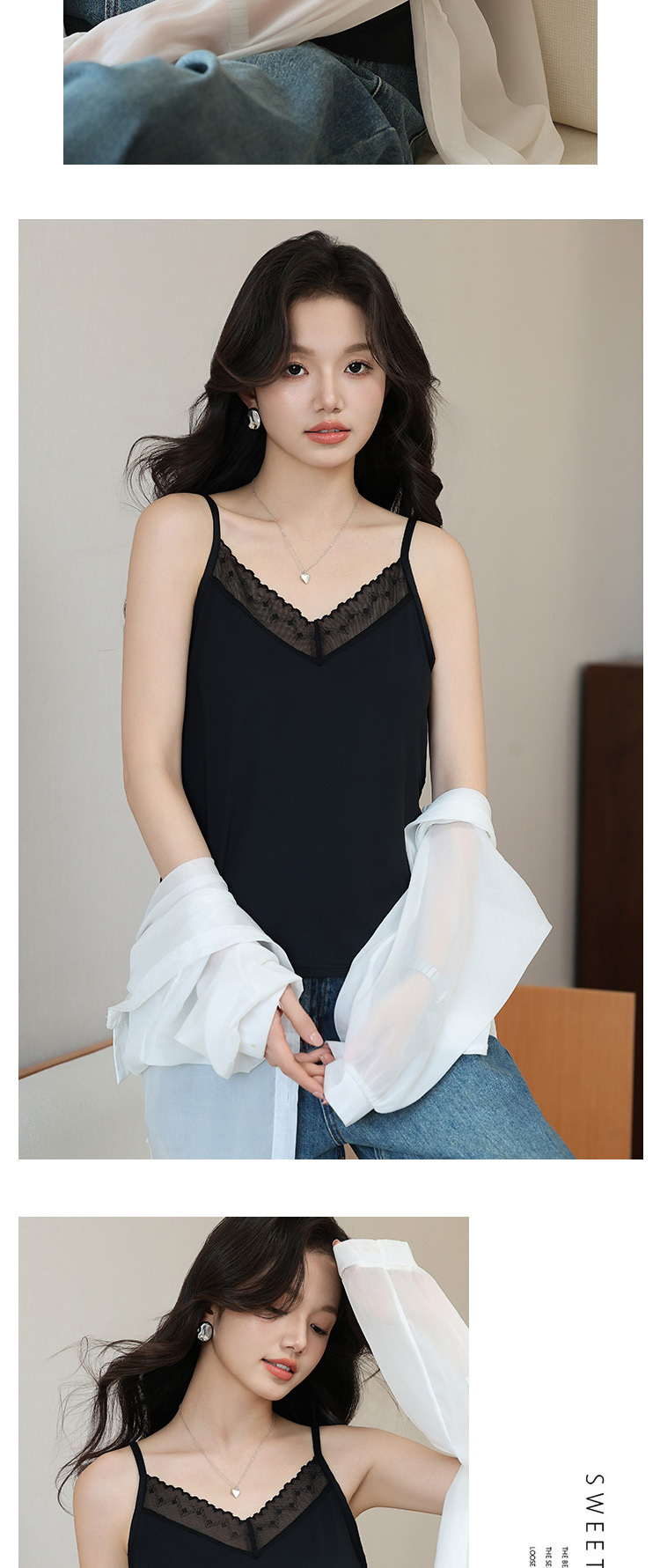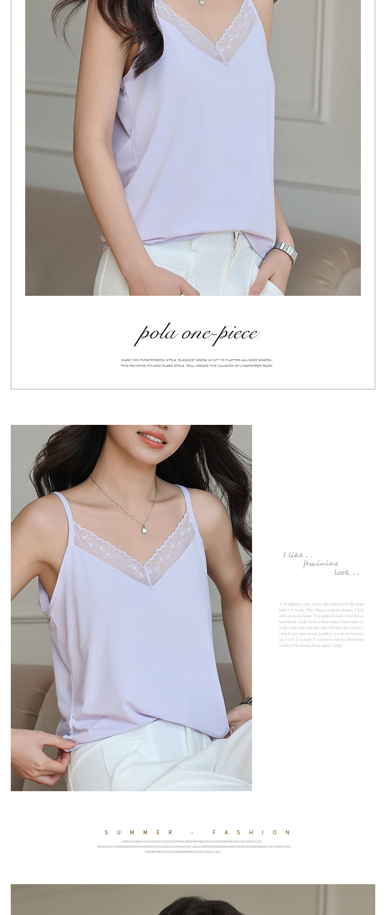 여성의 새로운 레이스 V-넥 카미 솔 다목적 새로운베이스 내부 착용 외부 착용 탑 신선한 슬림 핏 폭발 스타일스토어 가기