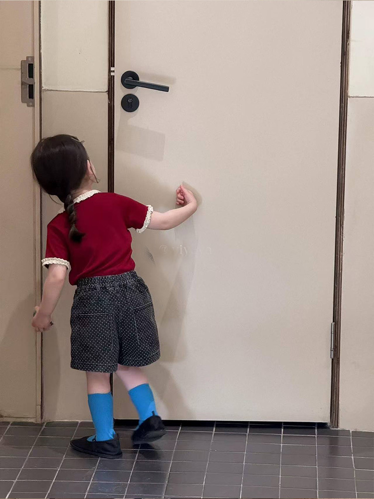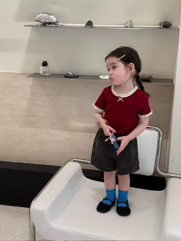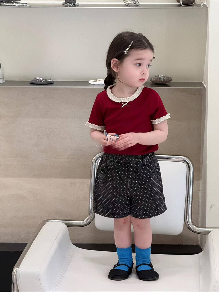 여자 반팔 티셔츠 2025 여름 새 한국 스타일 어린이 느슨한 레이스 크루 넥 탑 아기 소녀베이스 셔츠 T스토어 가기