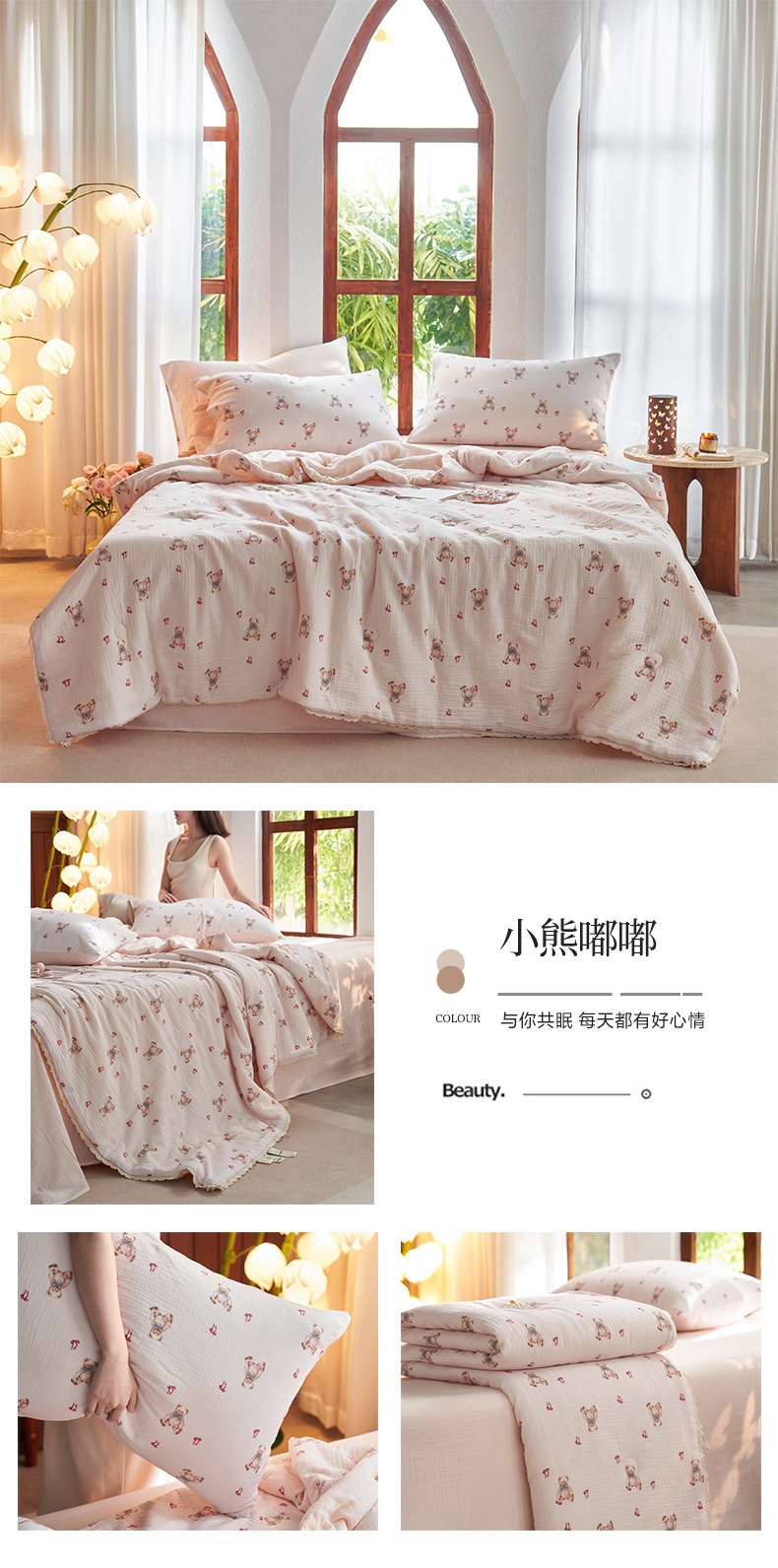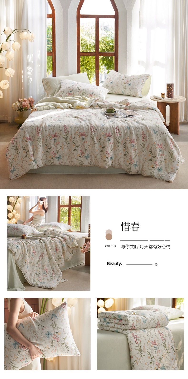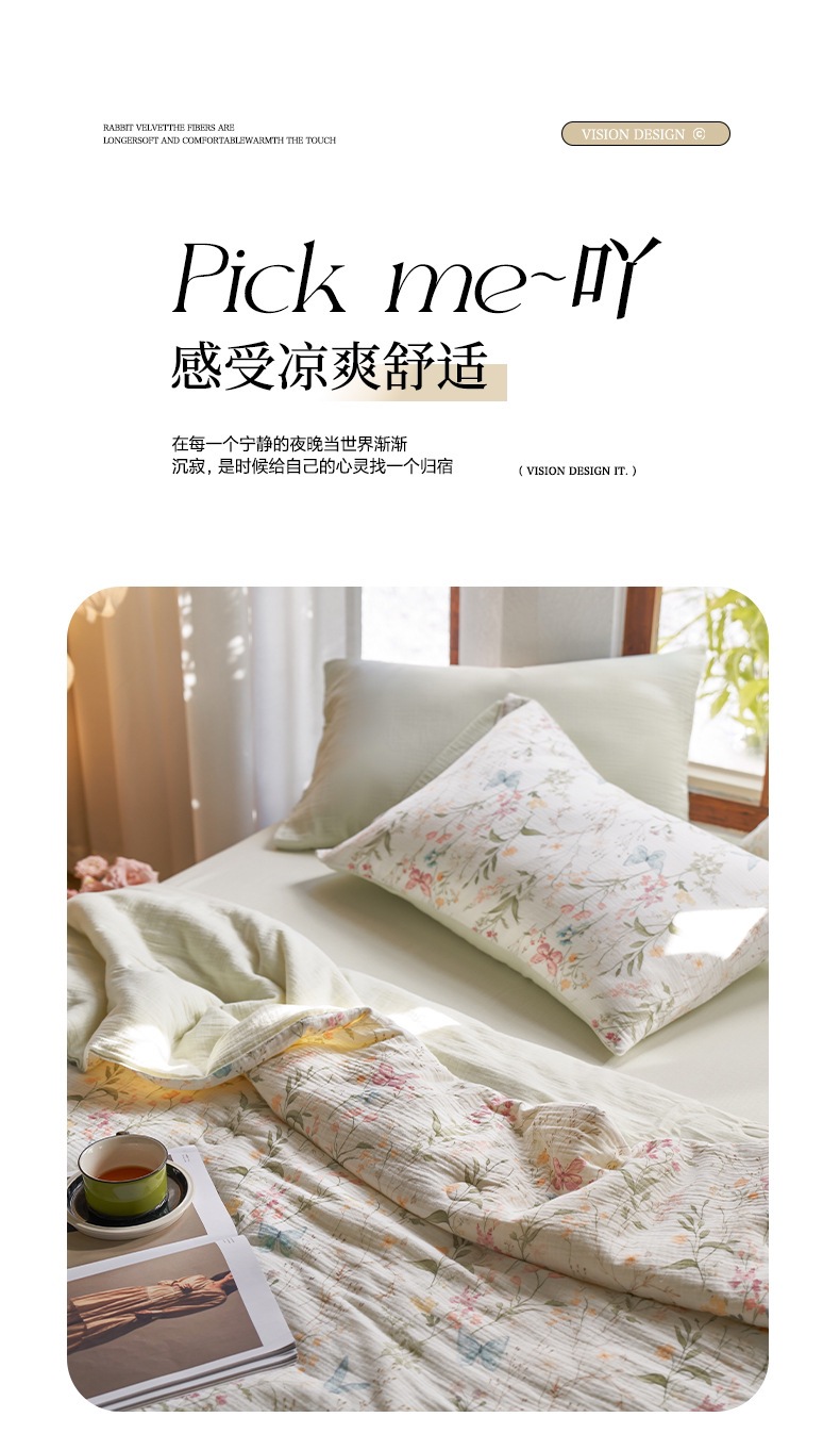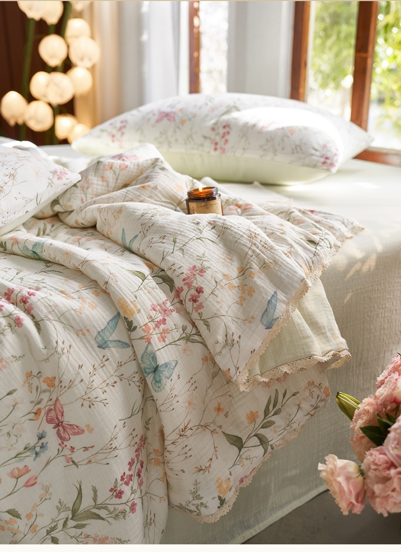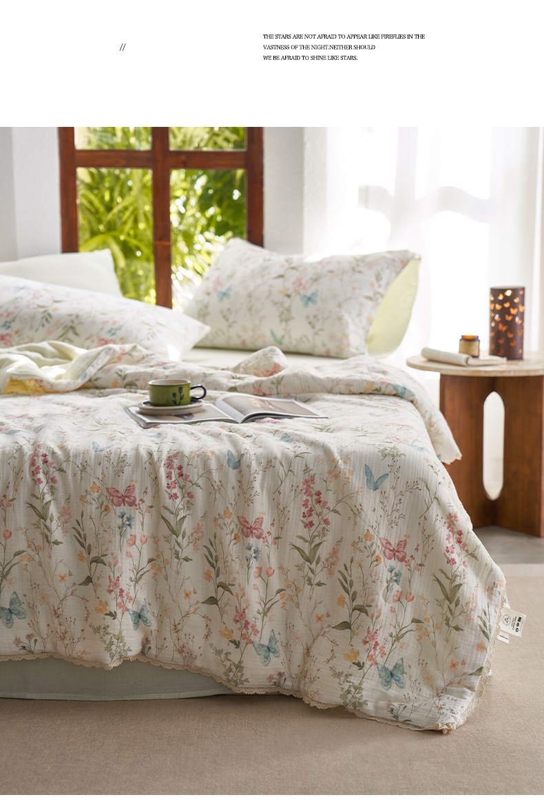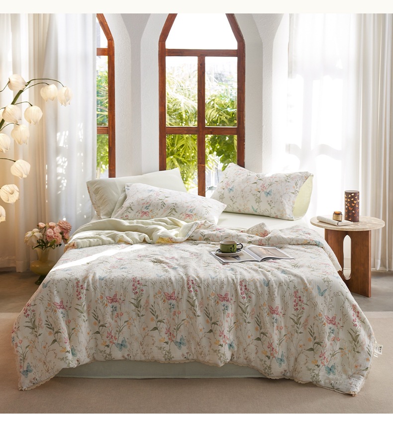 여름면화 유기농 안개 감지 더블 레이어 원사 여름 퀼트 콩 레이스 에어컨 이불 디지털 인쇄 여름 시원한 이불스토어 가기