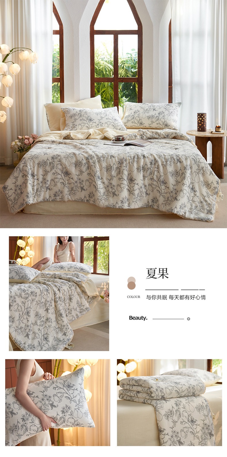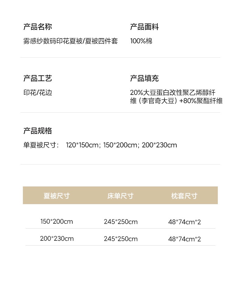 • 200x230cm 여름 이불 4종 세트: 여름 이불 200*230cm, 시트 245*250cm, 베갯잇 48*74cm 쌍