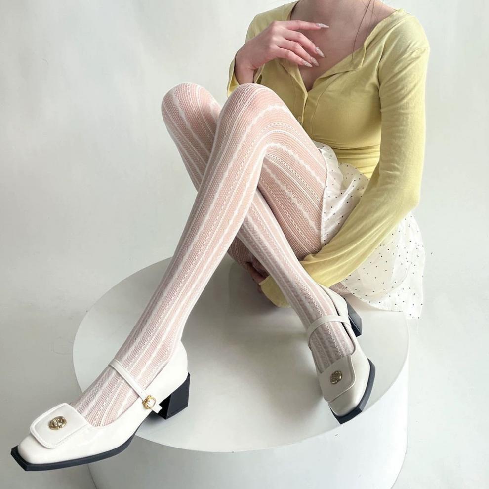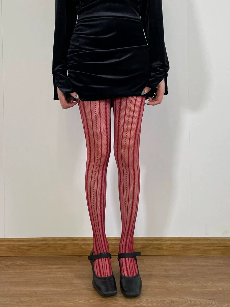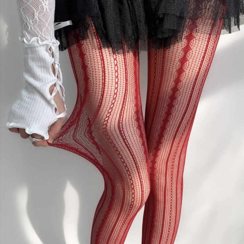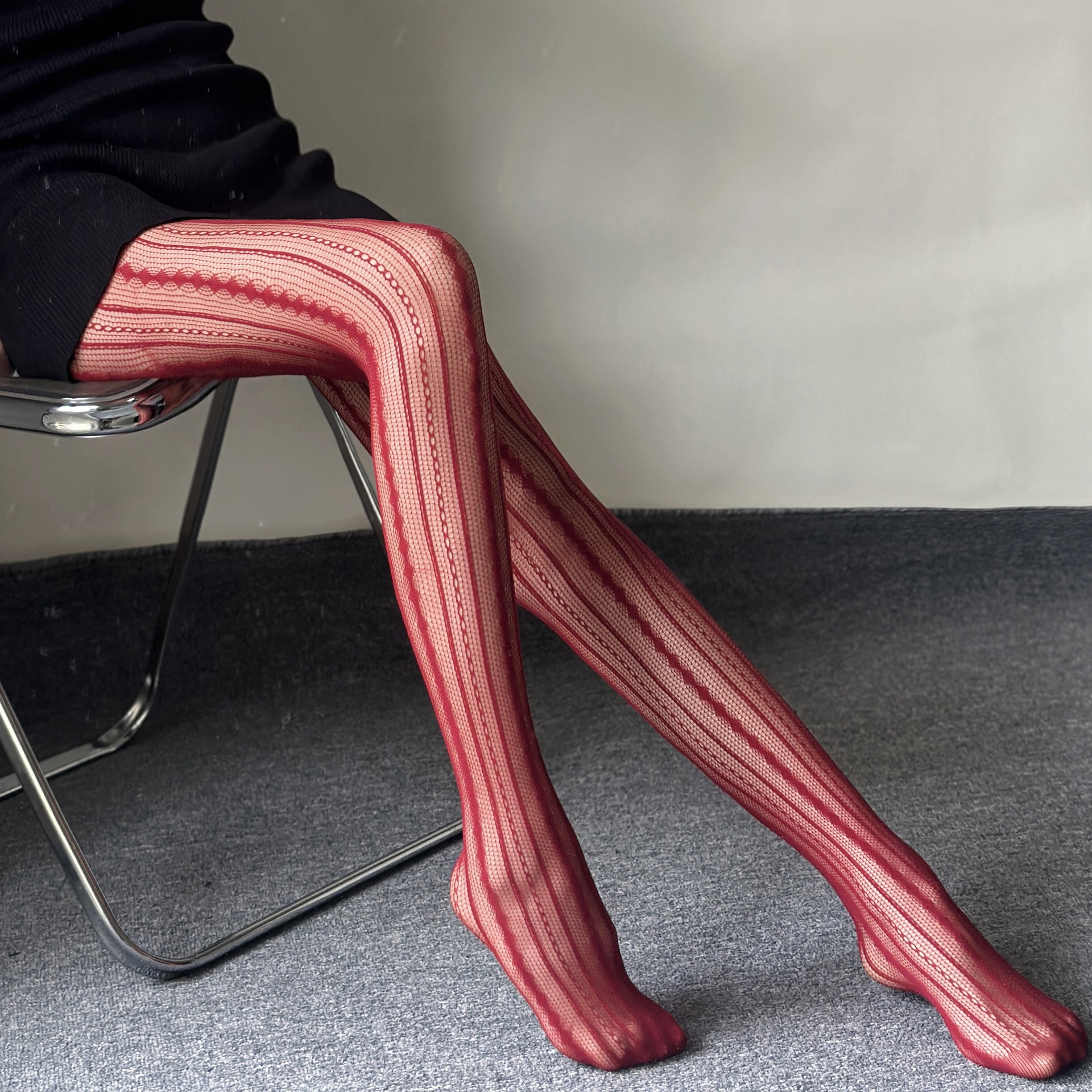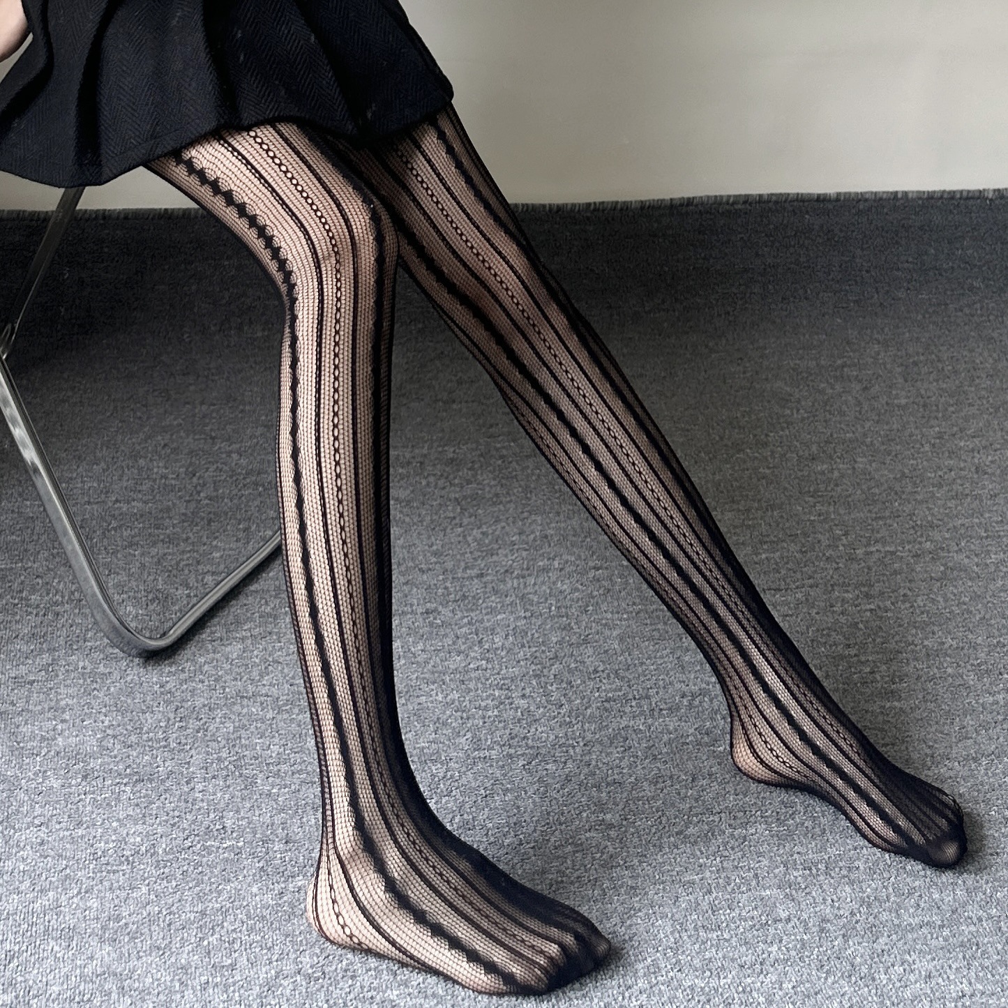 섹시한 틈새 수직 패턴 섹시한 메쉬 바지 Y2K 스파이스 소녀 스티칭 할로우 블랙 실크 스타킹 올 매치 Girly Circle Fishnet 스타킹스토어 가기