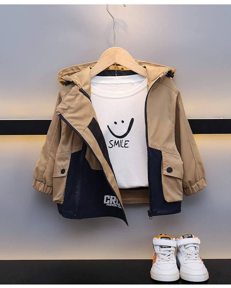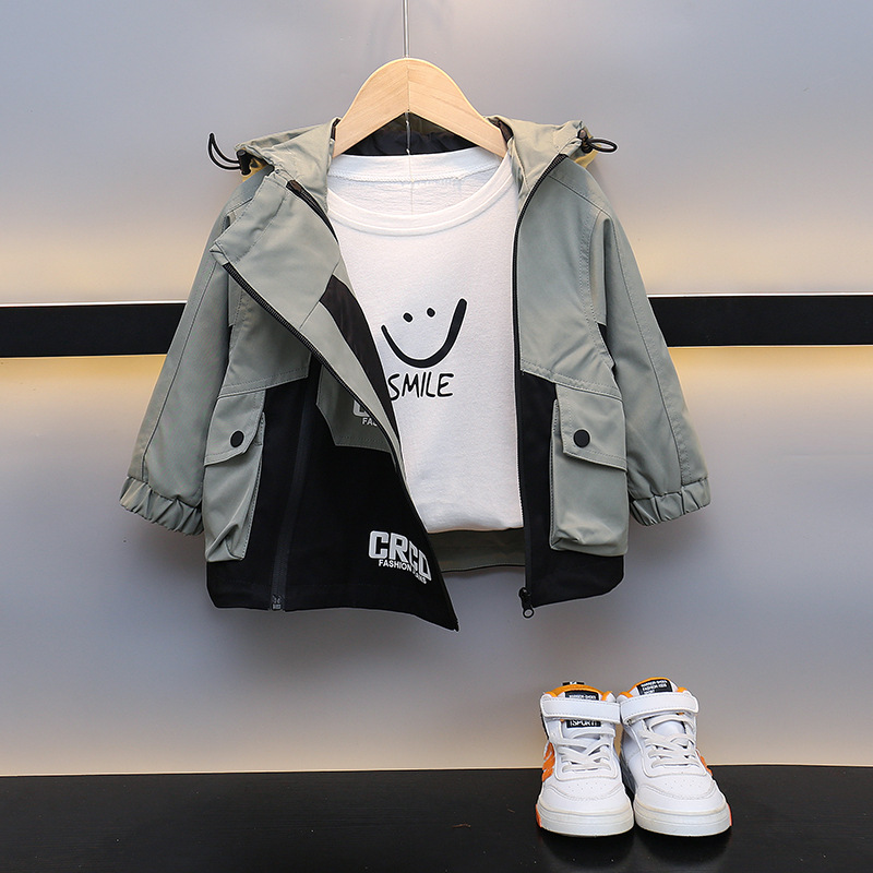 소년 작업복 코트 어린이 봄과 가을 2025 새로운 후드 윈드브레이커 베이비 스트리트 패션 봄 옷