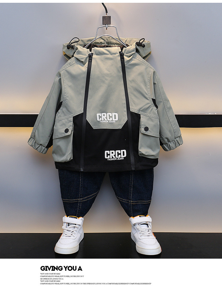 소년 작업복 코트 어린이 봄과 가을 2025 새로운 후드 윈드브레이커 베이비 스트리트 패션 봄 옷스토어 가기