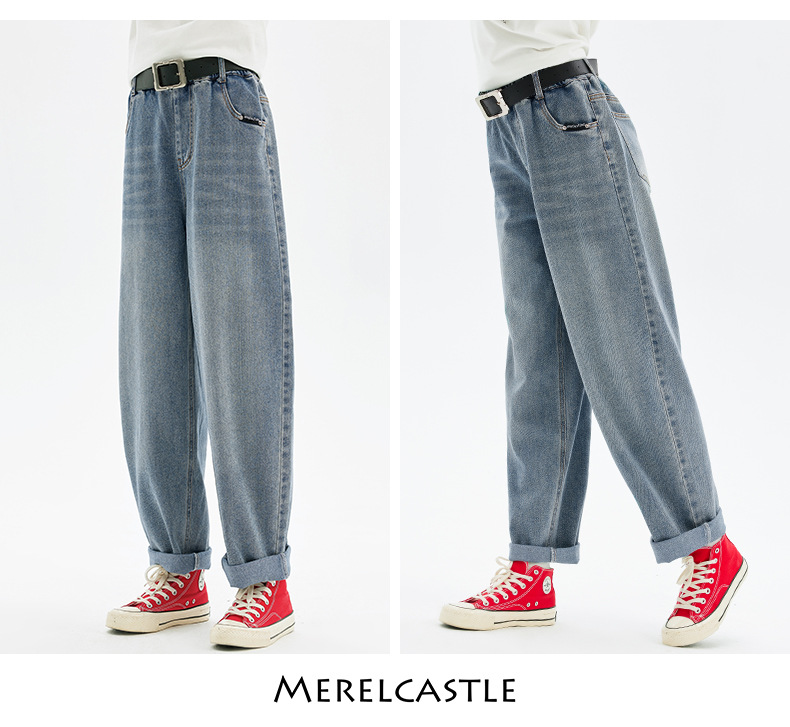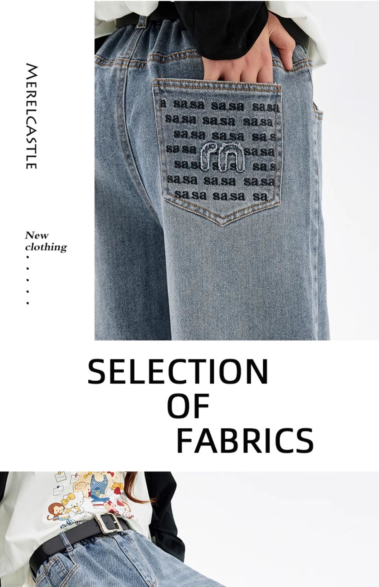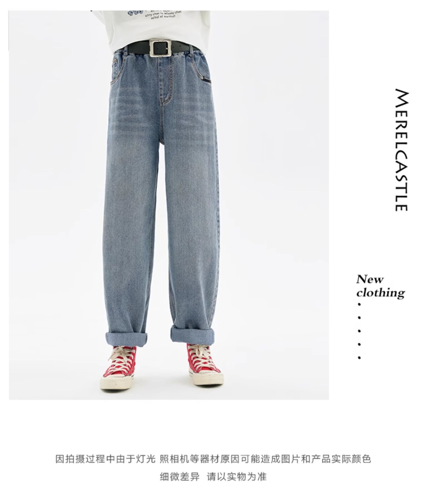 소녀 청바지 느슨한 넓은 다리 2025 새로운 십대 소녀 봄 스트레이트 바지스토어 가기