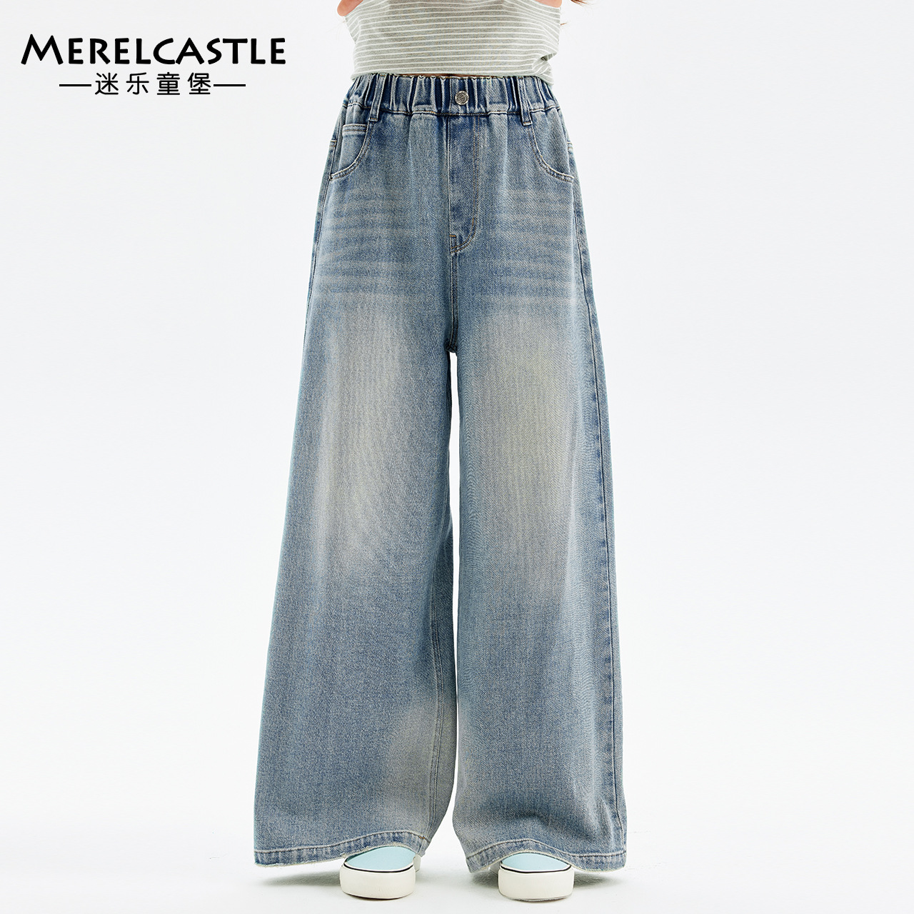 소녀 청바지 느슨한 넓은 다리 2025 새로운 십대 소녀 봄 스트레이트 바지