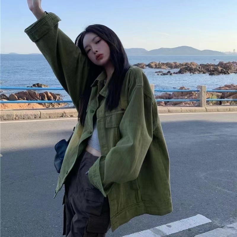 홍콩 스타일 레트로 워크웨어 데님 재킷 여성용 2026년 신상 봄 디자인 아메리칸 스타일 그라데이션 긴팔 재킷 상의스토어 가기