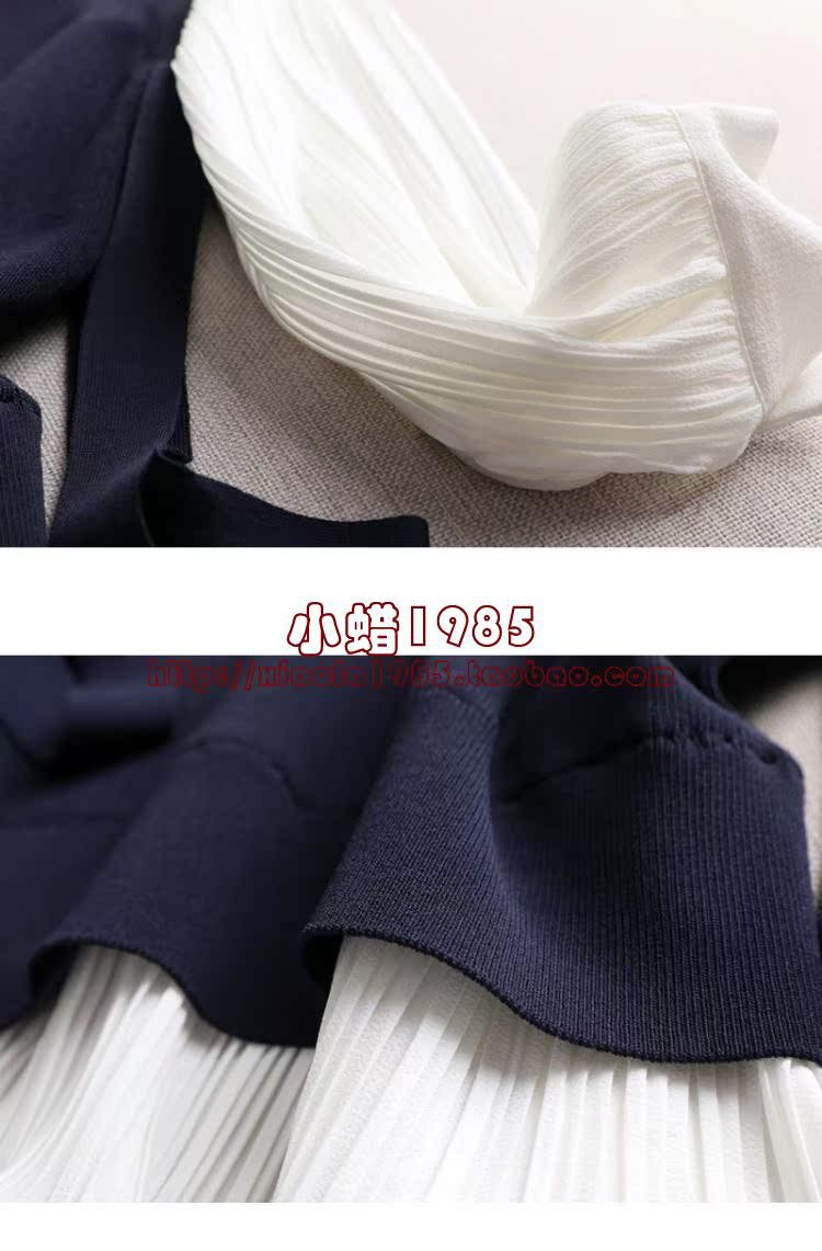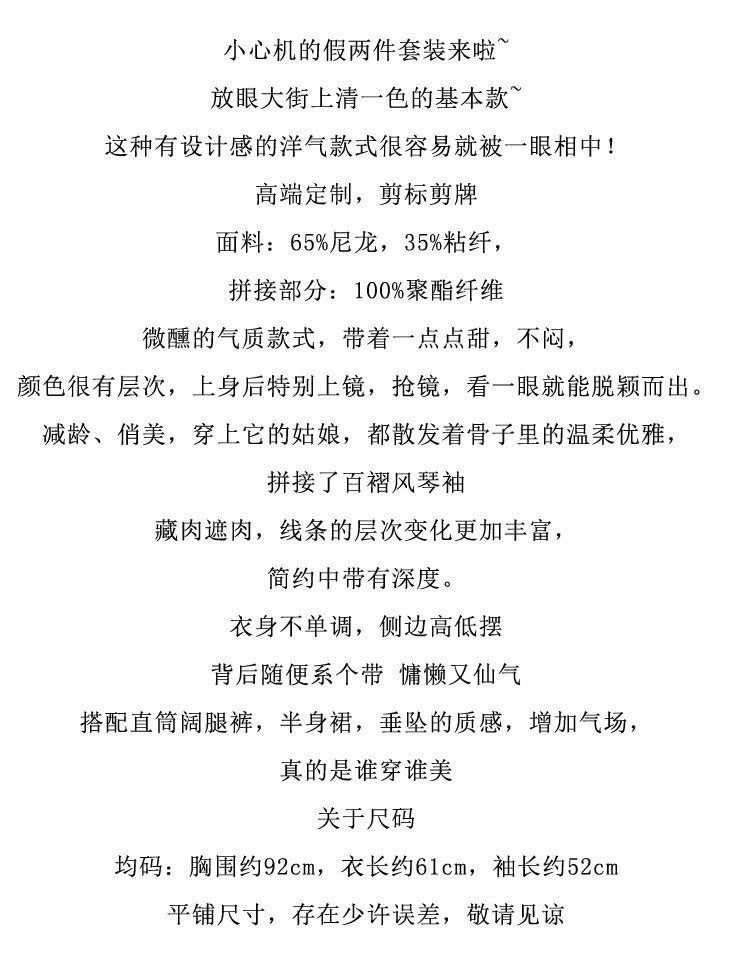 특별 제공 복지 가짜 2 피스 쉬폰 오르간 주름 9 피스 랜턴 슬리브 바느질 레이스 업 허리 니트 풀오버