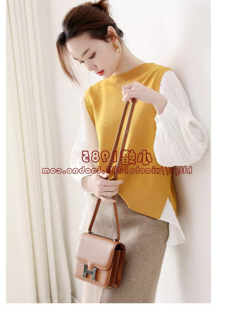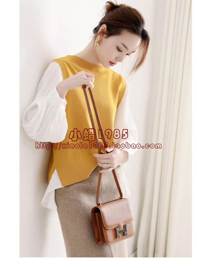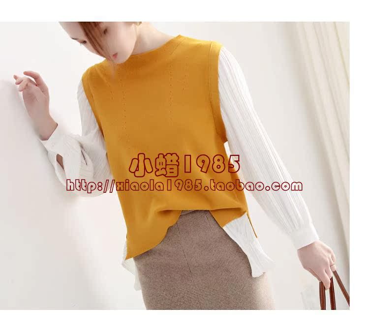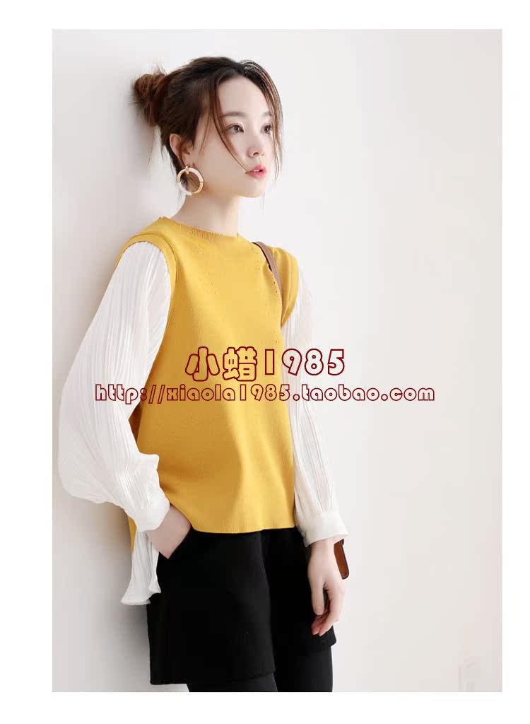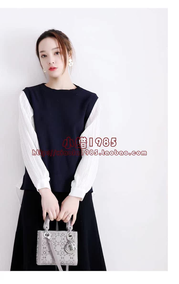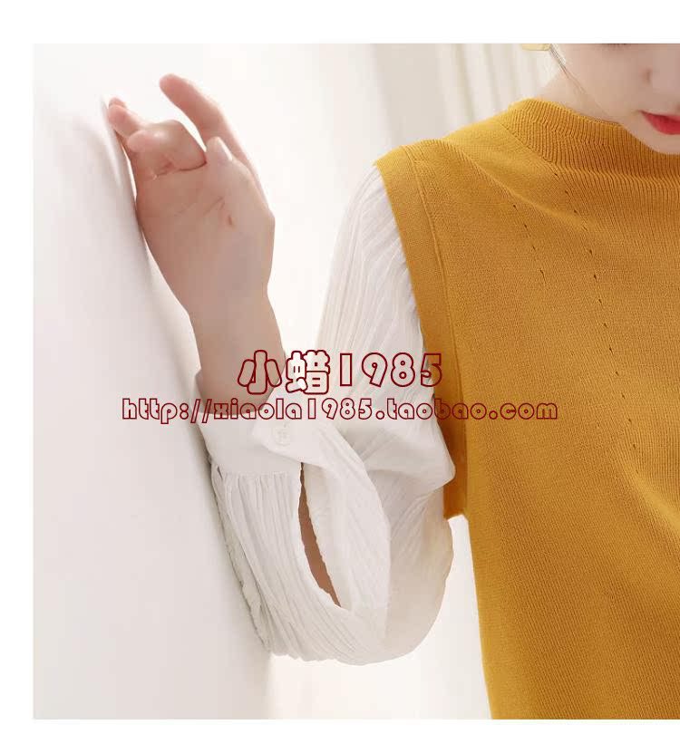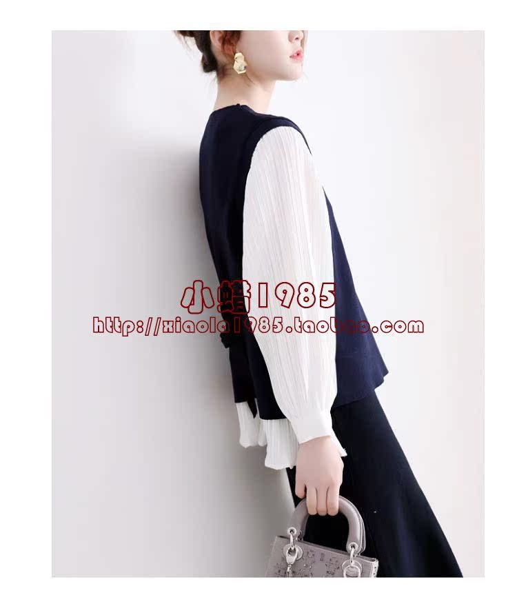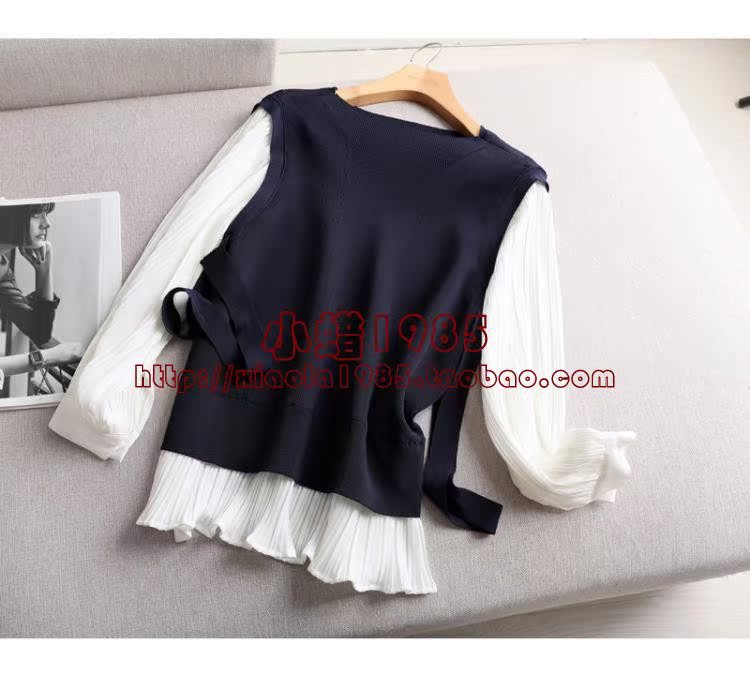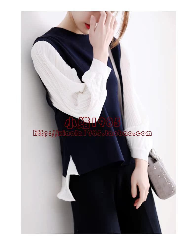 특별 제공 복지 가짜 2 피스 쉬폰 오르간 주름 9 피스 랜턴 슬리브 바느질 레이스 업 허리 니트 풀오버스토어 가기