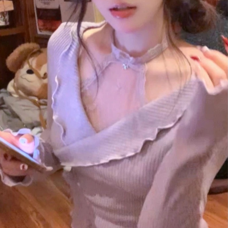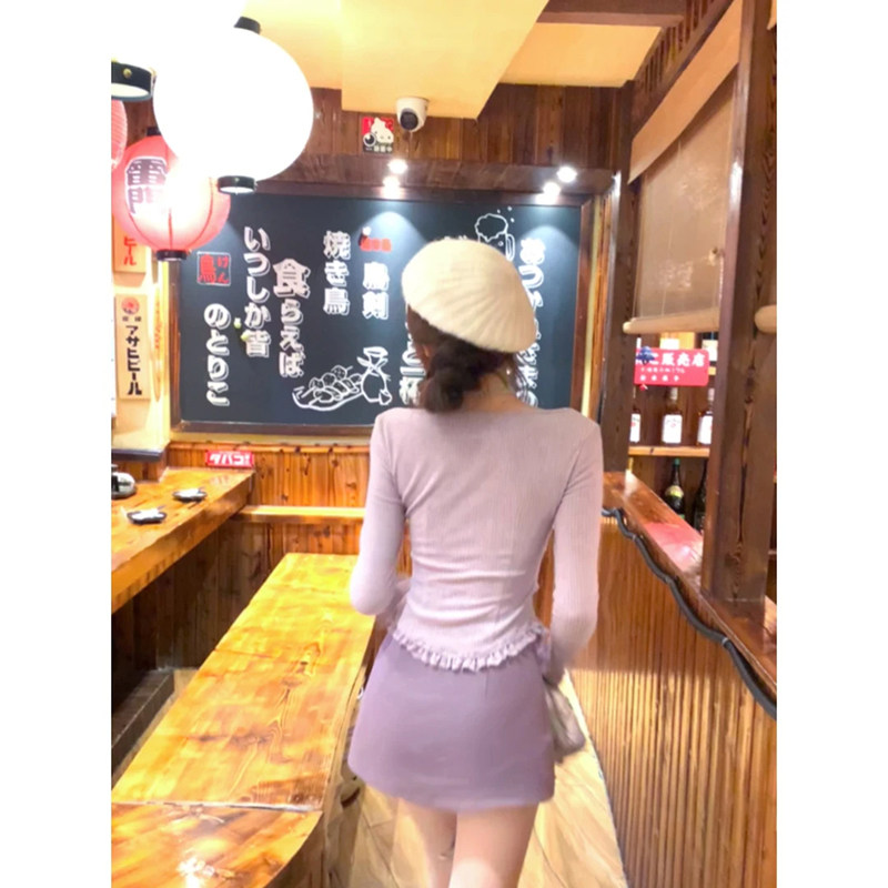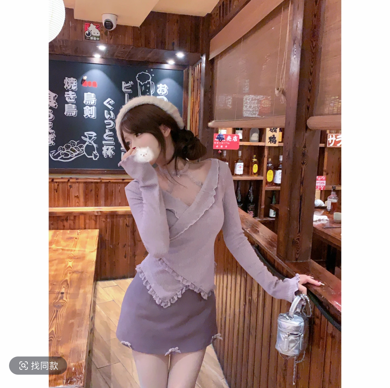 순수한 욕망 스파이스 소녀 스타일 귀 가장자리 디자인 센스 퍼플 크로스 탑 여성의 봄 새로운 우아한 A 라인 짧은 치마 세트스토어 가기