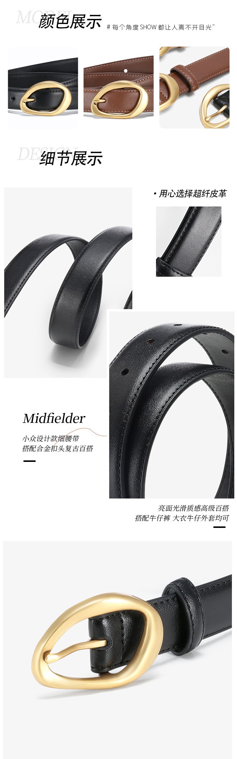 인기 여성 벨트, 국경 간 도매, 고급 패션 허리띠, 패션 틈새 가벼운 얇은 벨트