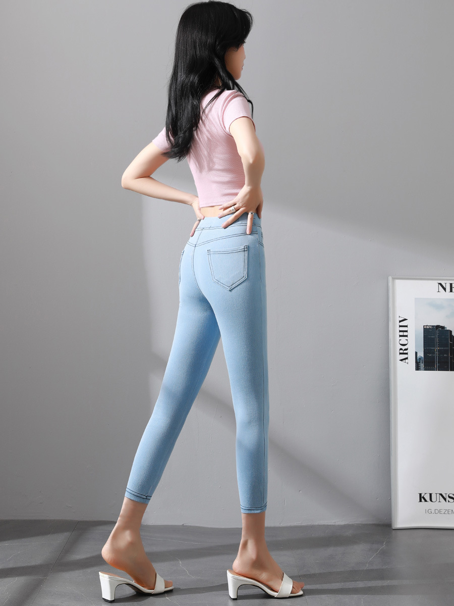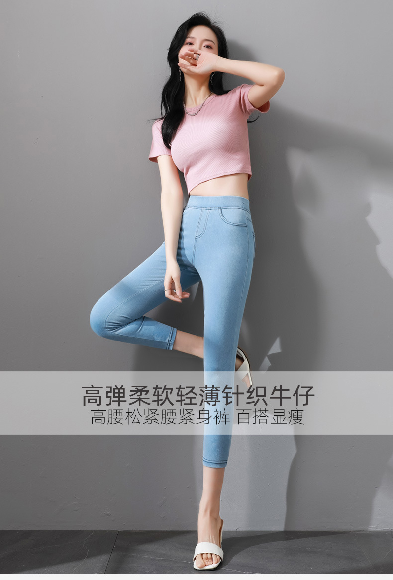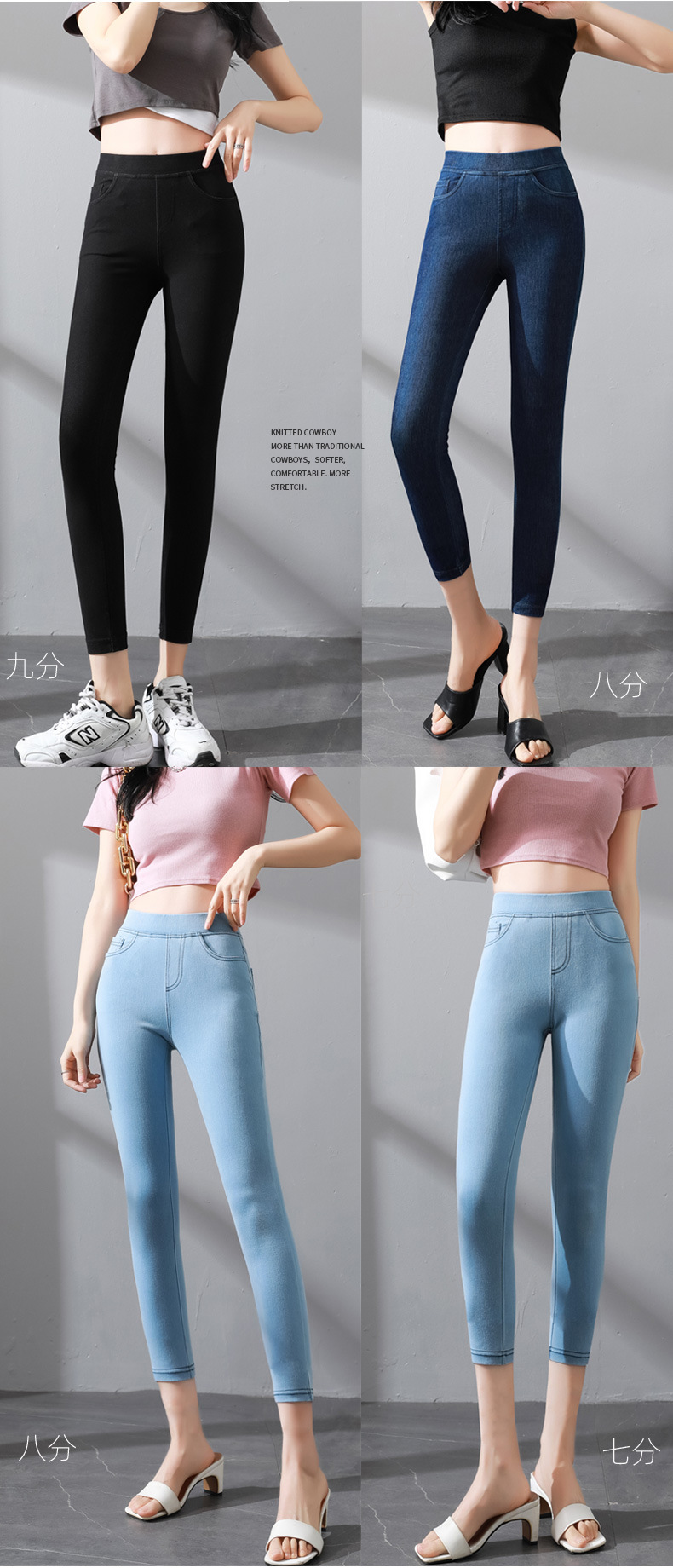 4 면 니트 소프트 청바지 여성용 여름 초박형 얇은 탄성 연필 9 점 엉덩이 바비 트레이스 레깅스스토어 가기