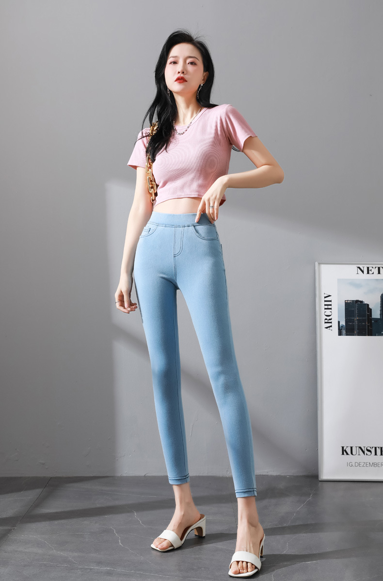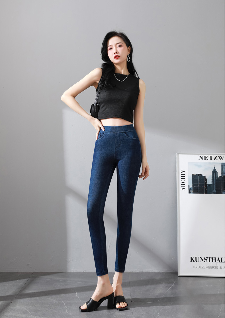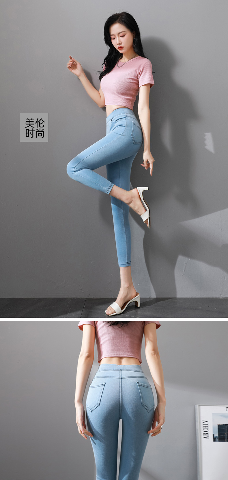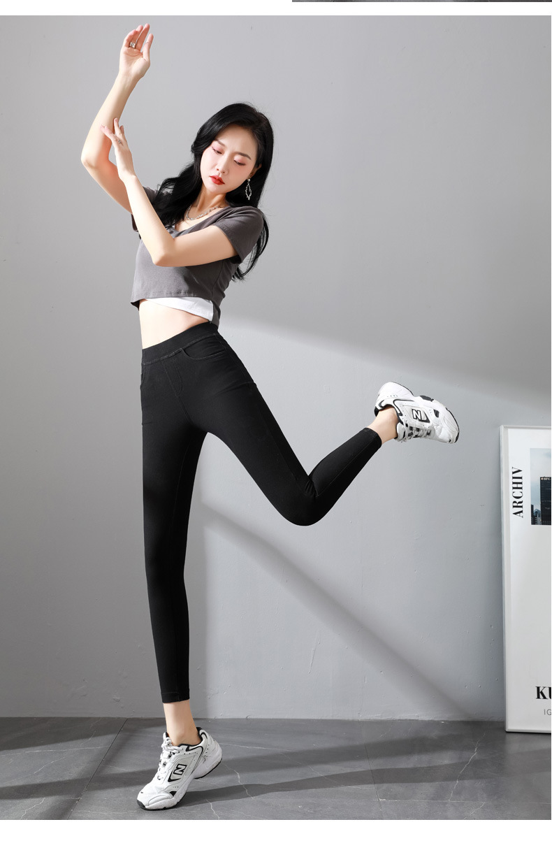 4 면 니트 소프트 청바지 여성용 여름 초박형 얇은 탄성 연필 9 점 엉덩이 바비 트레이스 레깅스스토어 가기
