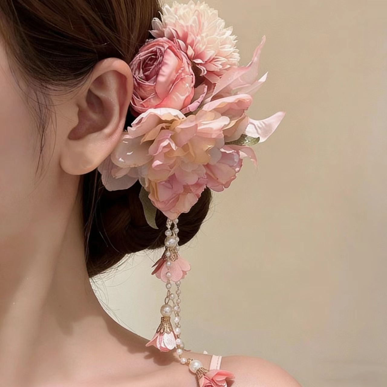 • 라이트 핑크 쉬폰 가지 꽃 머리핀