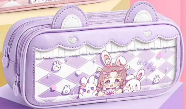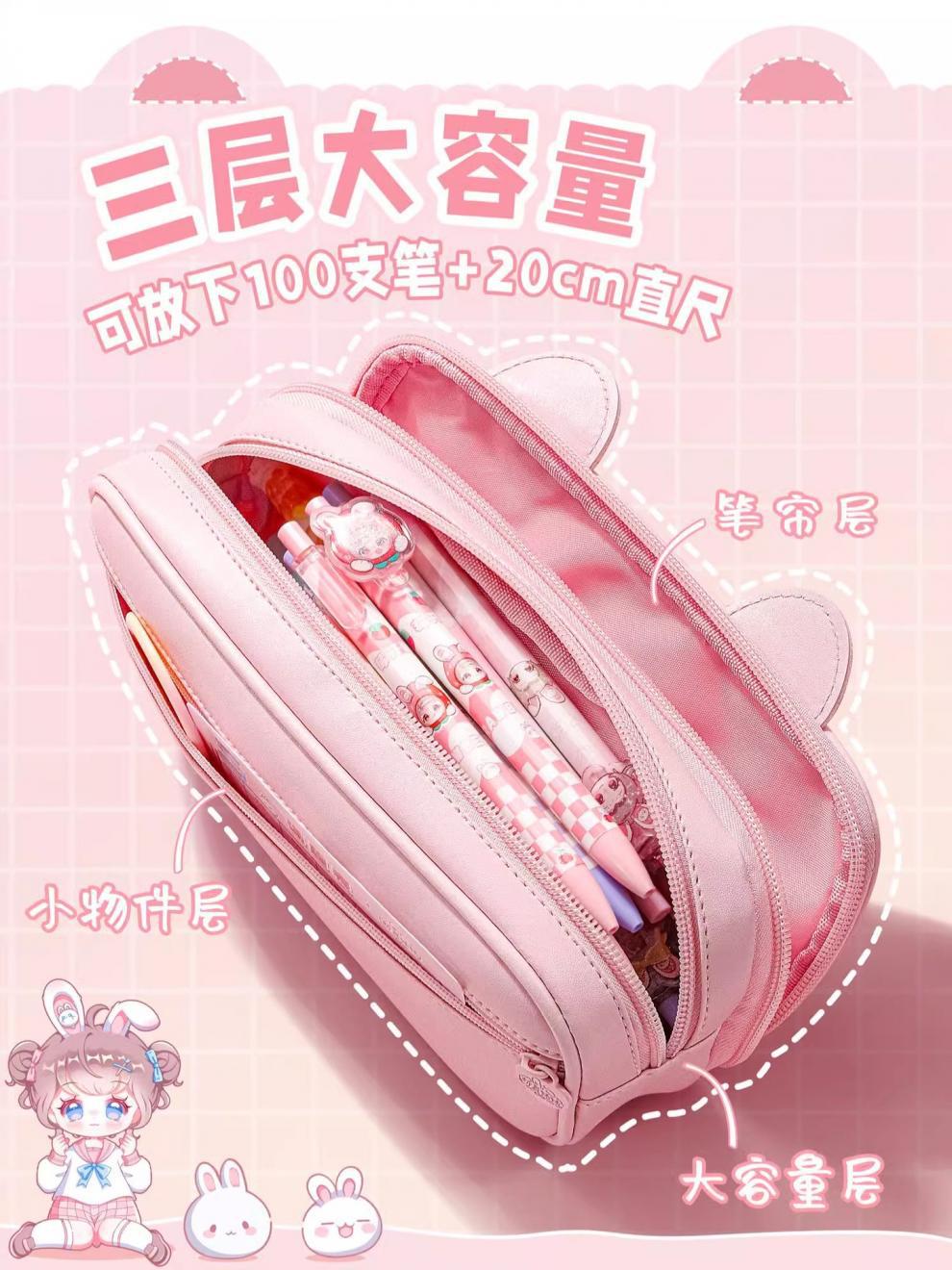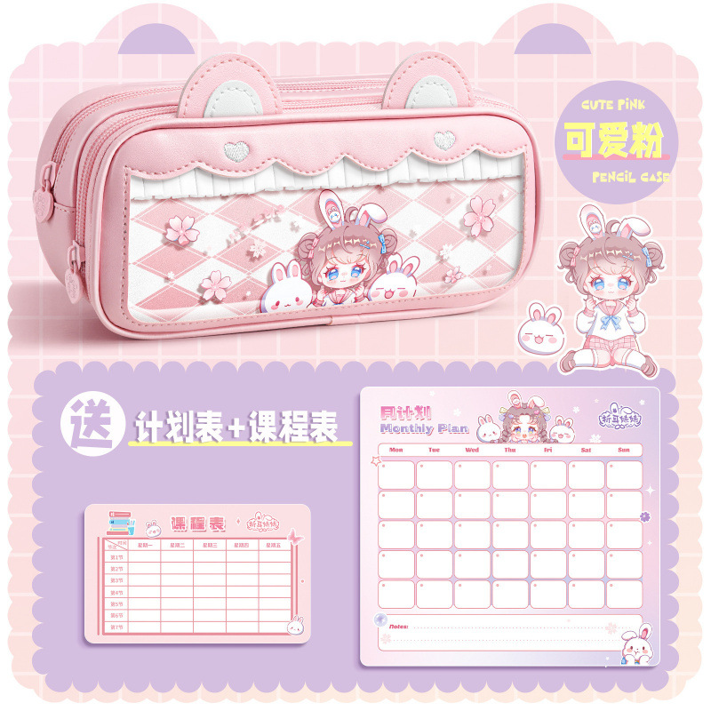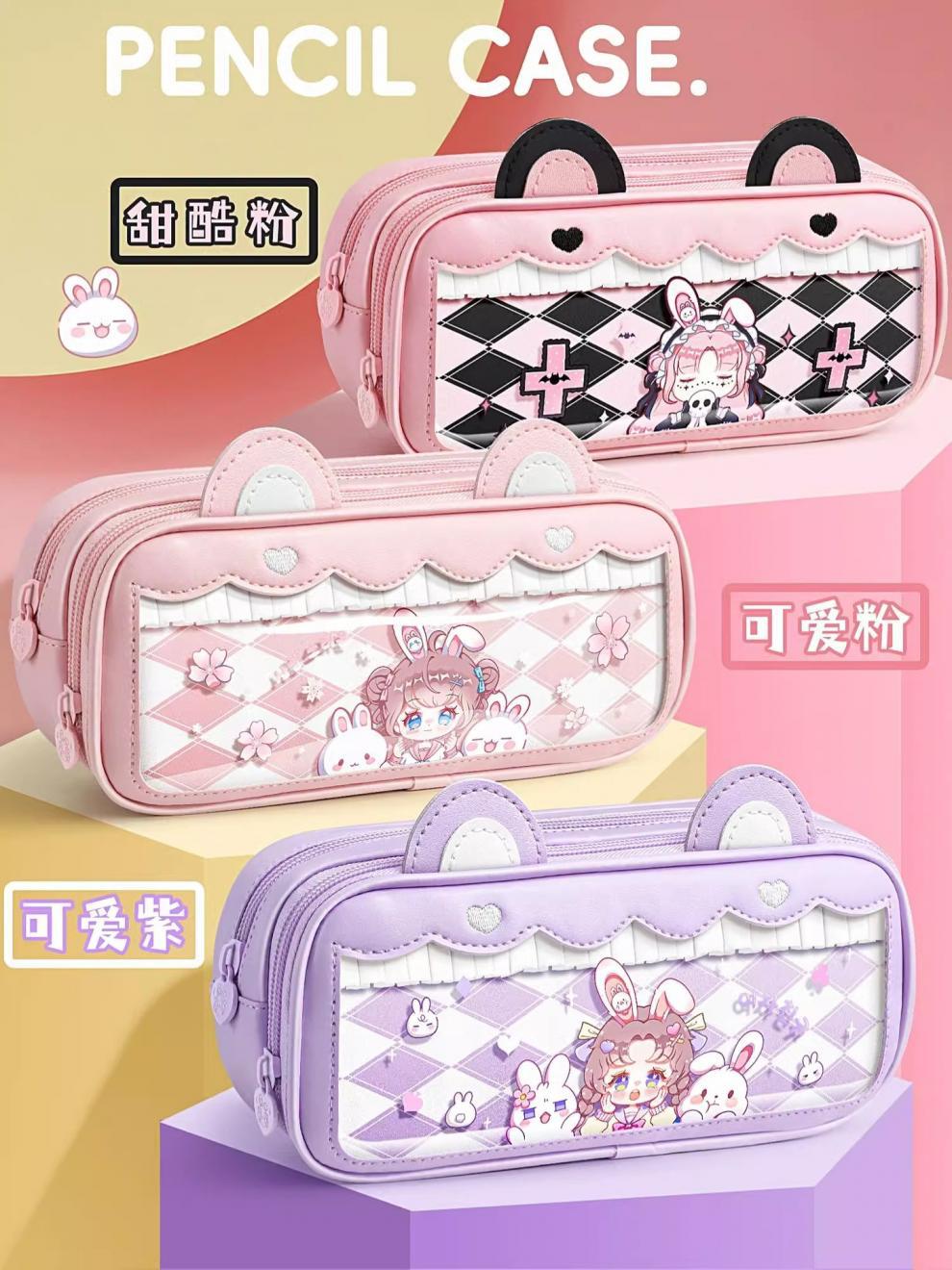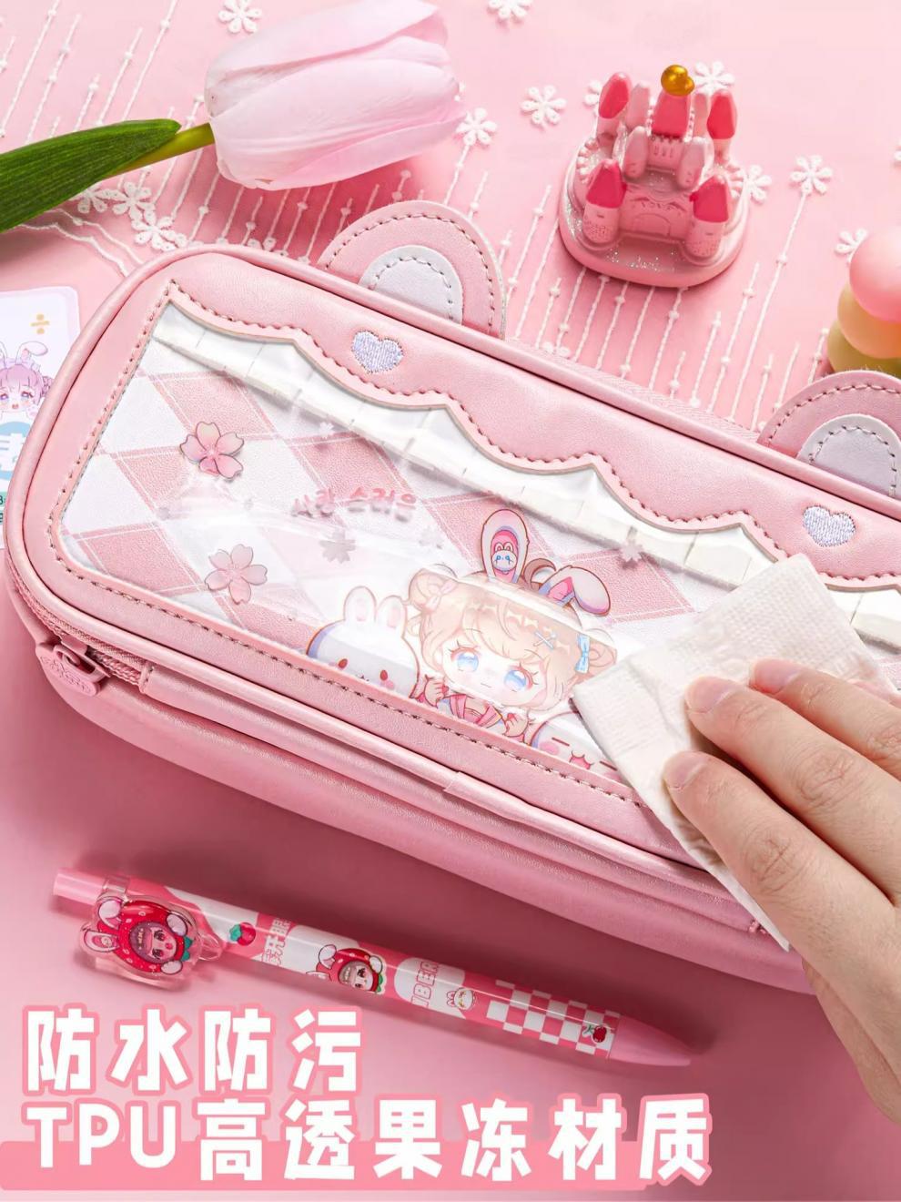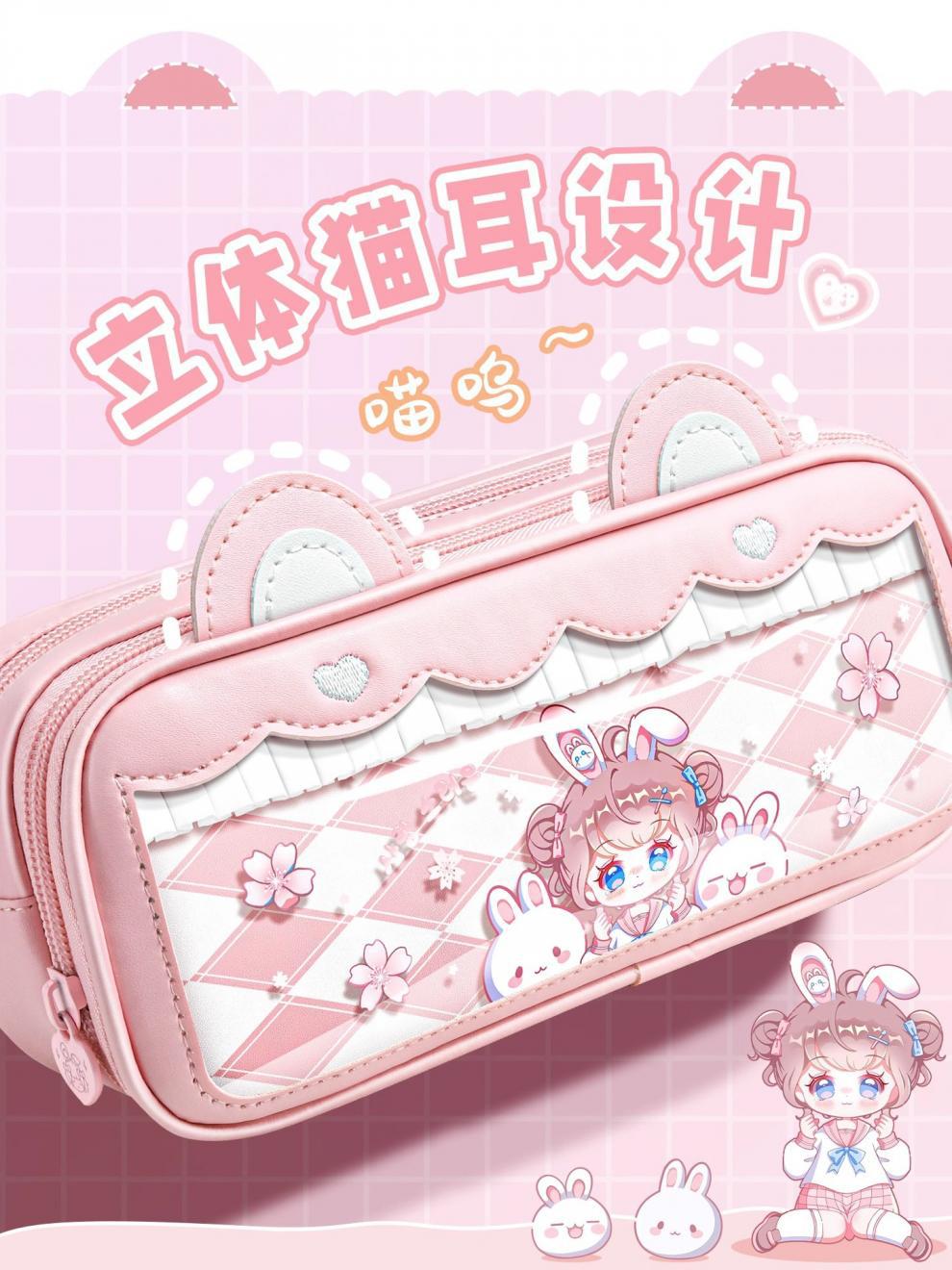 접이식 귀 자매 고양이 귀 연필 가방 귀여운 대용량 연필 가방 투명 다기능 문구 상자 높은 색 가치 연필 상자