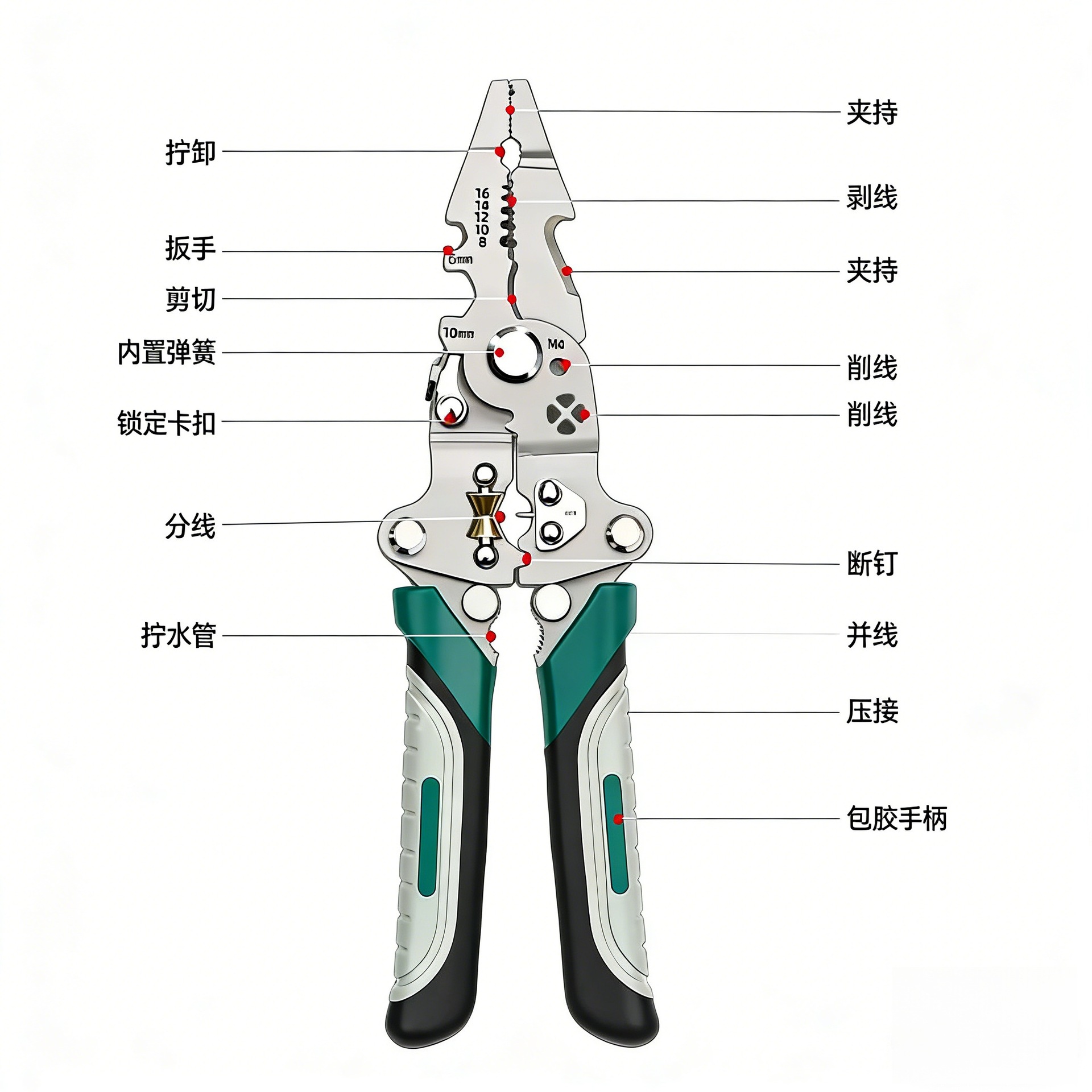 새로운 전기공용 다기능 와이어 스트리퍼, 접이식 분리형 산업용 와이어 절단기, 노동력 절약형 디자인