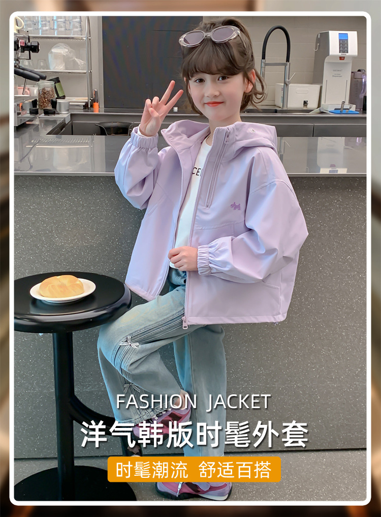 소녀 코트 봄과 가을 2025 새로운 어린이 스타일리스트 옷깃 최고의 어린이 대학 스타일 재킷 지퍼 셔츠스토어 가기