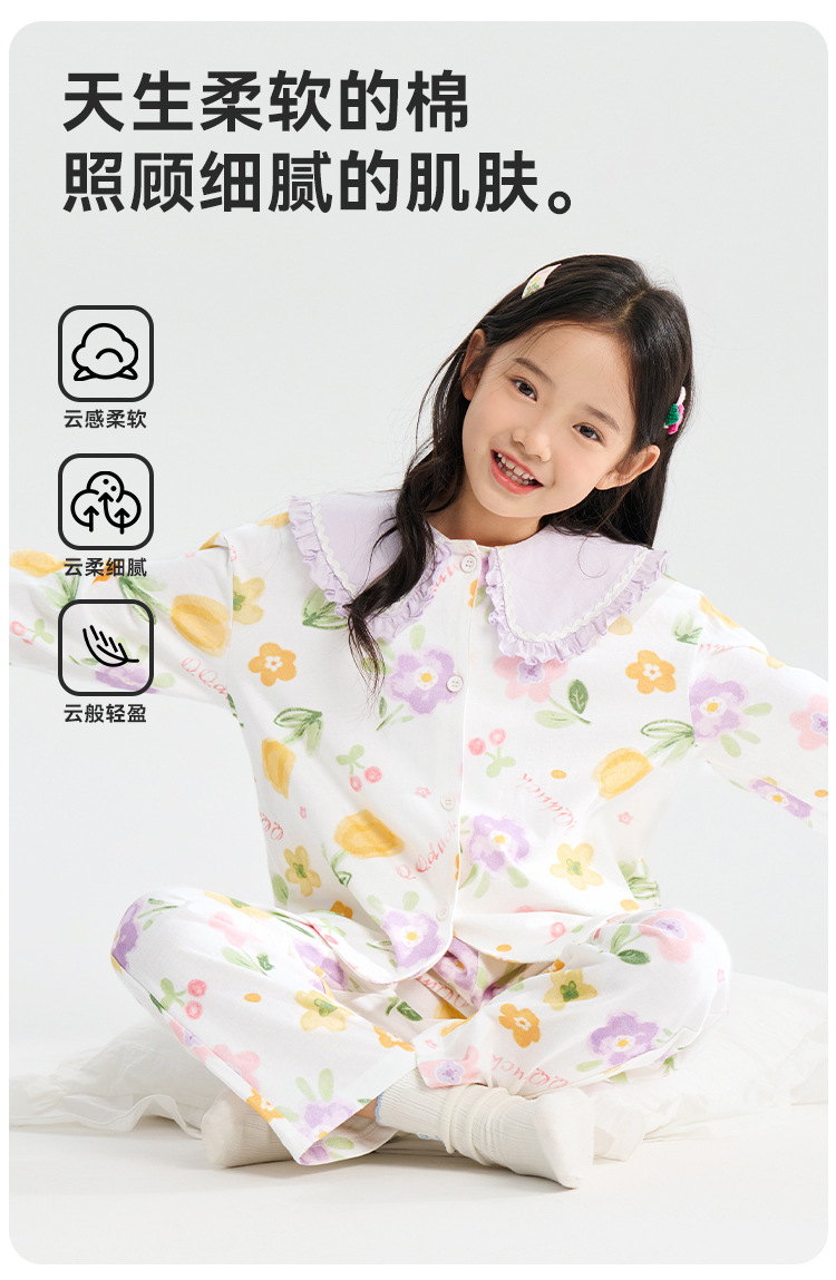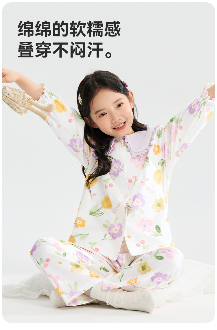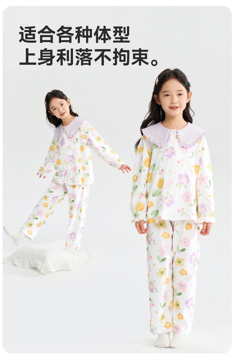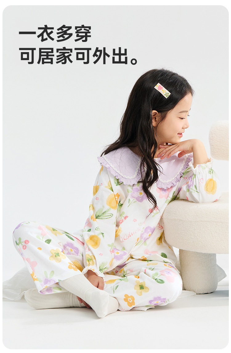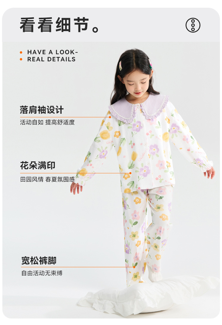 QQduck Cocoa Duck Spring New Girls 'Pajamas 세트 어린이 면 꽃 집 옷 투피스 세트