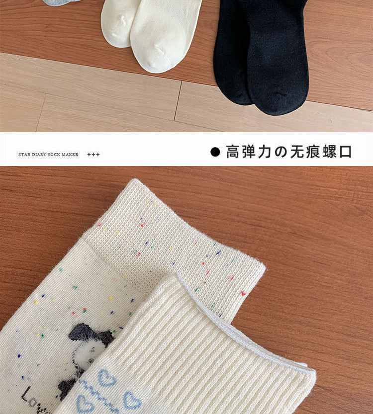 양말 여성의 귀여운 만화 중간 길이 양말 봄과 여름 얇은 모든 경기 목회 스타일 느낌 아일랜드 Ins 트렌디 한 일본 스타일 양말스토어 가기