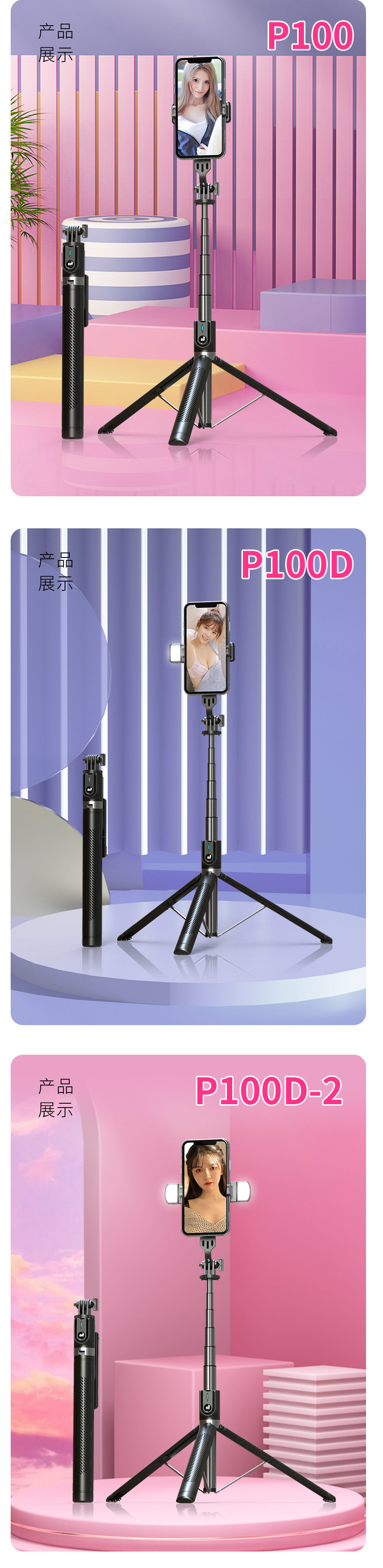아름다움과 빛을 채우는 야외 라이브 셀카 블루투스 휴대 전화 유니버설 셀카 스틱이있는 휴대용 플로어 스탠딩 통합 삼각대
