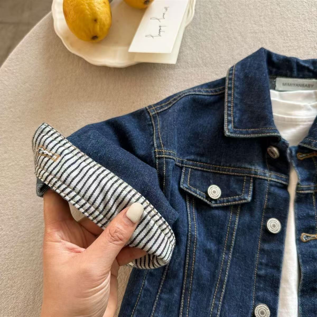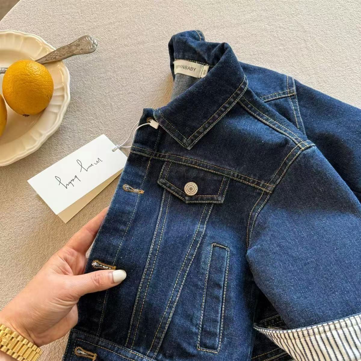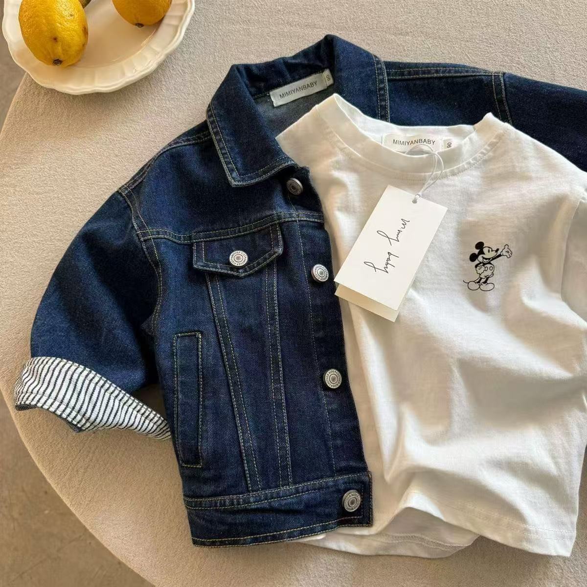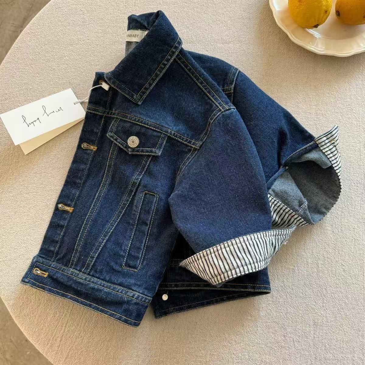 어린이 데님 자켓 남자 2025 봄과 가을 새로운 어린이 복고풍 셔츠 한국식 소년 아기의 단색 자켓 잘 생긴스토어 가기