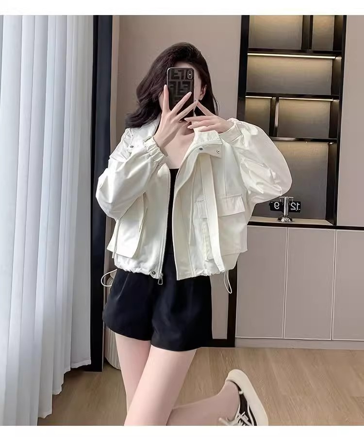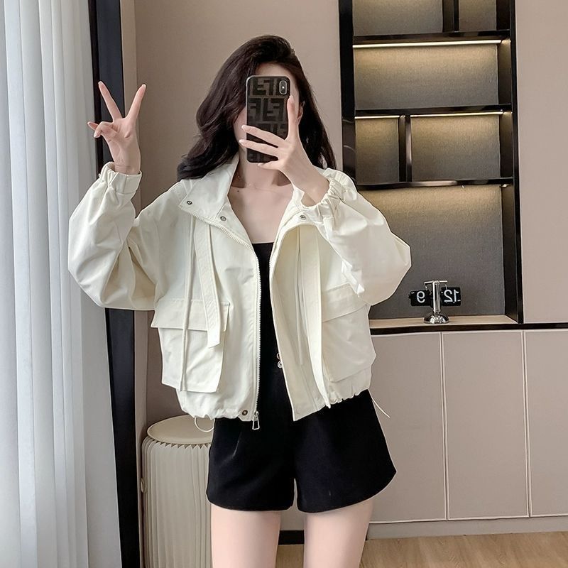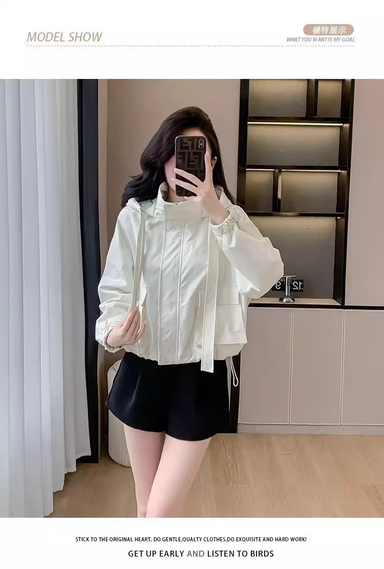 패션 우아한 짧은 코트 여성의 2025 가을 새로운 캐주얼 올 매치 충전 코트 후드 워크 자켓 트렌디 탑