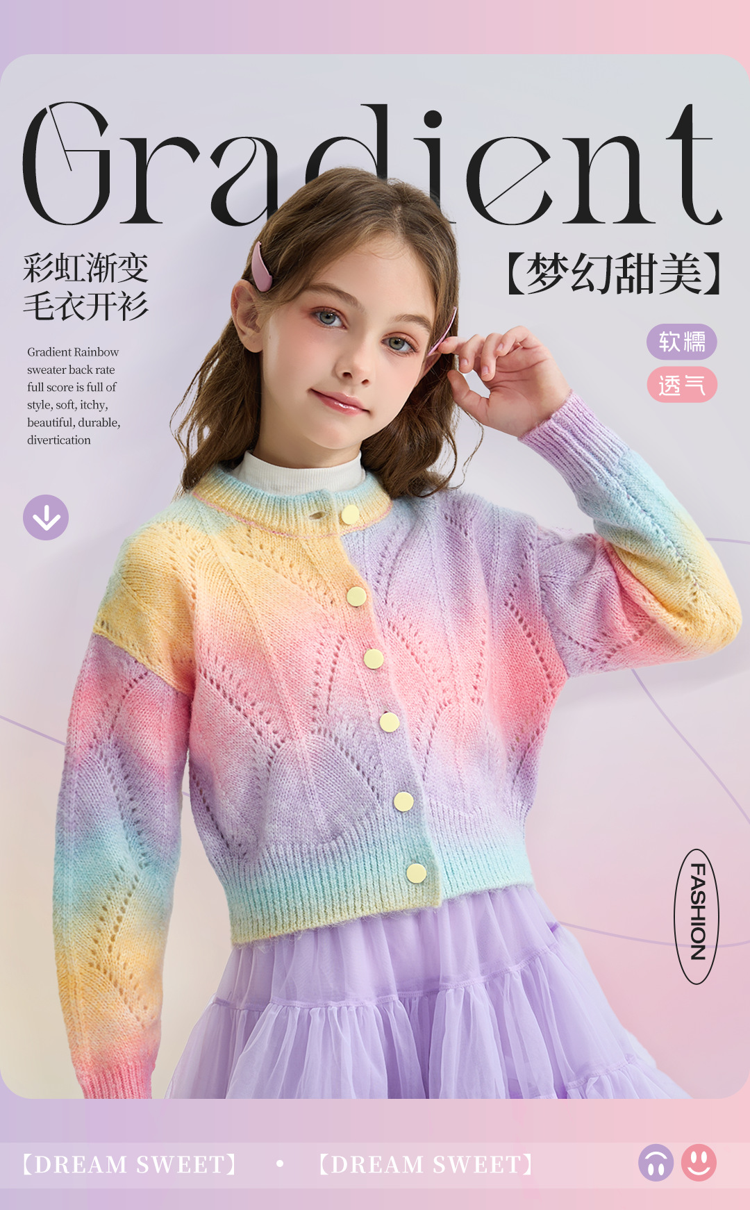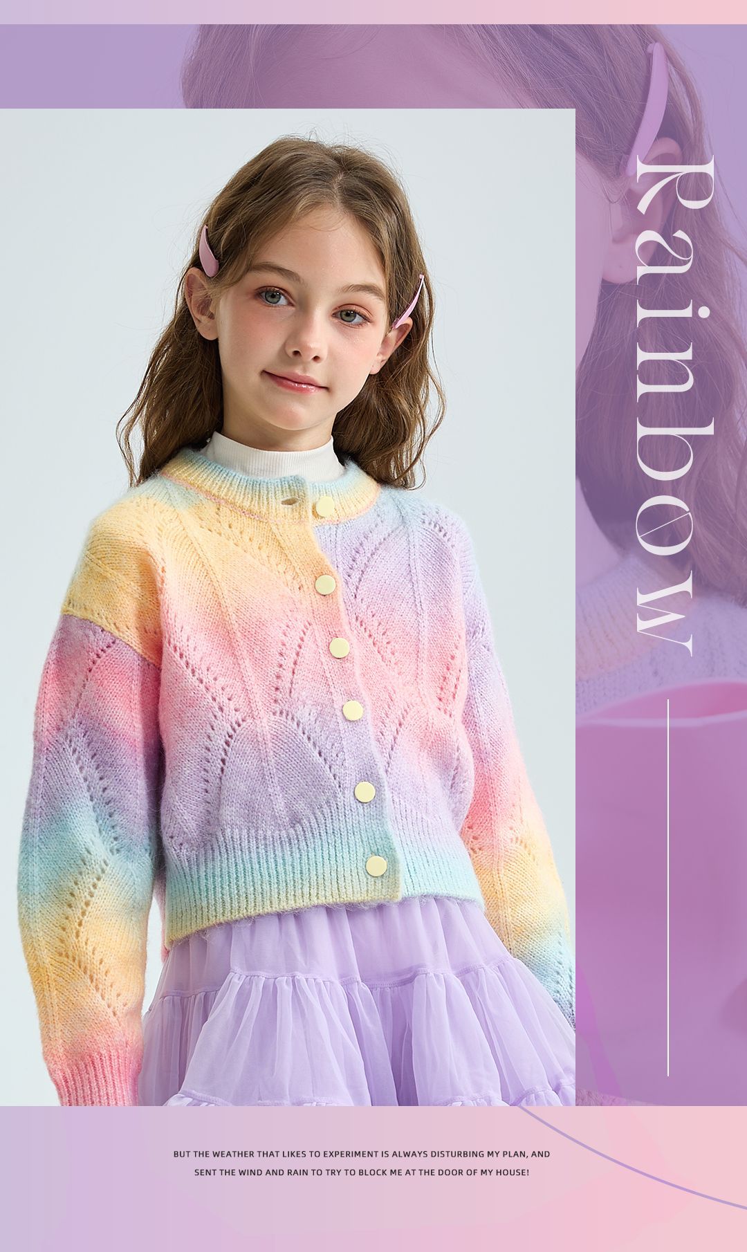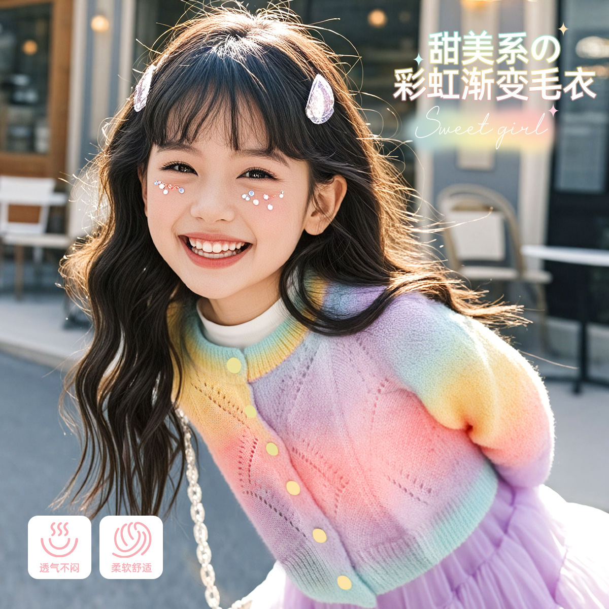 여자 스웨터 봄 그라디언트 컬러 카디건 스웨터 2025 새로운 어린이 무지개 스웨터 제조 업체 도매스토어 가기
