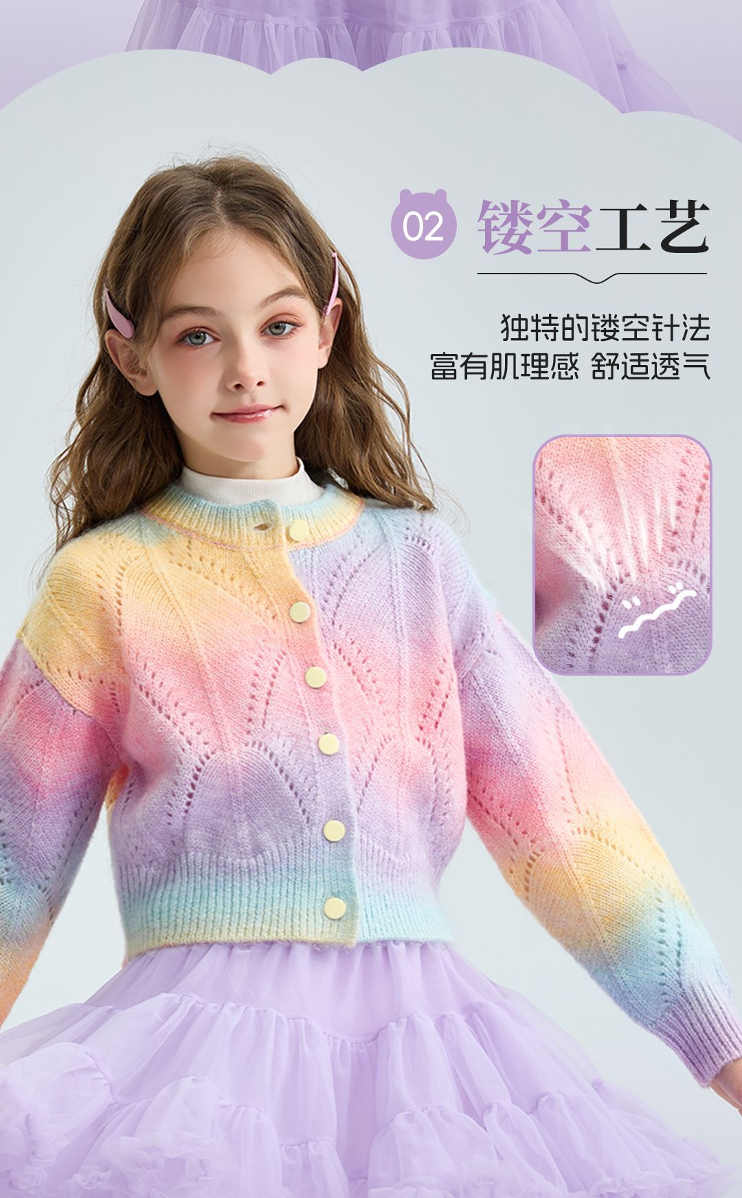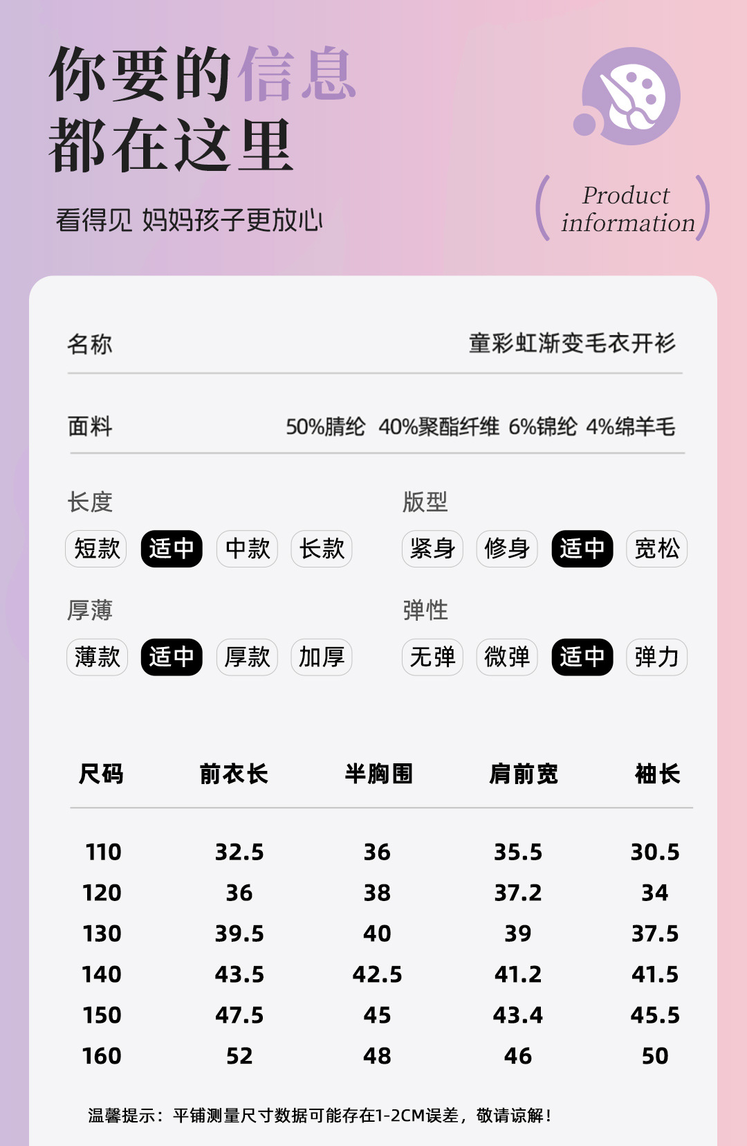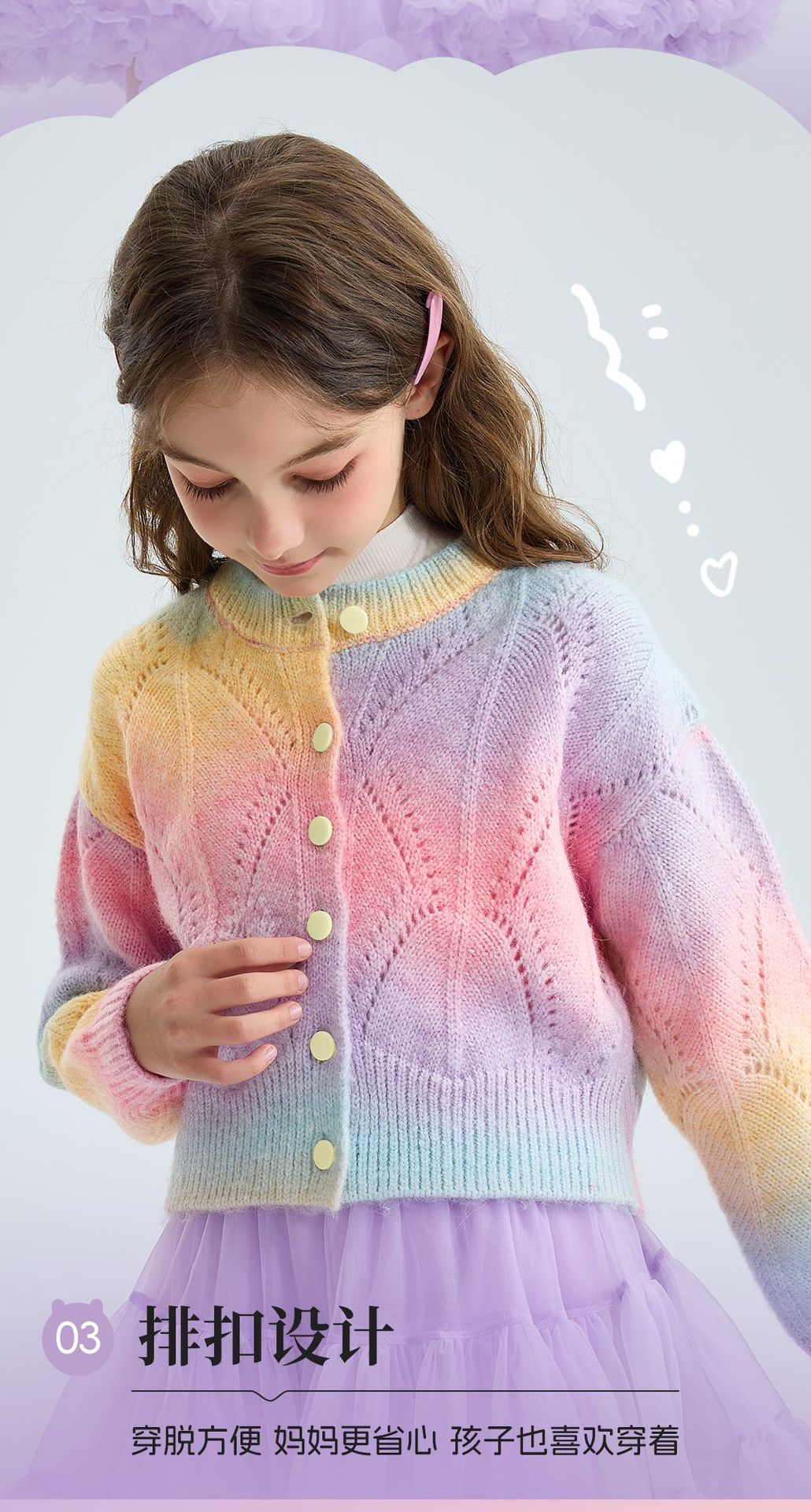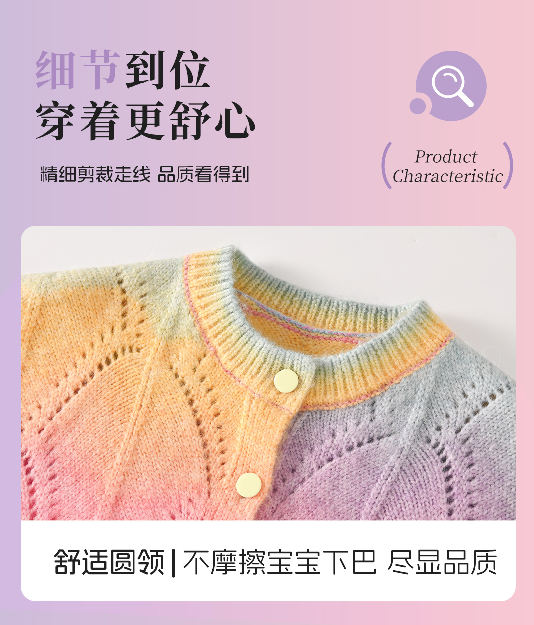 여자 스웨터 봄 그라디언트 컬러 카디건 스웨터 2025 새로운 어린이 무지개 스웨터 제조 업체 도매스토어 가기