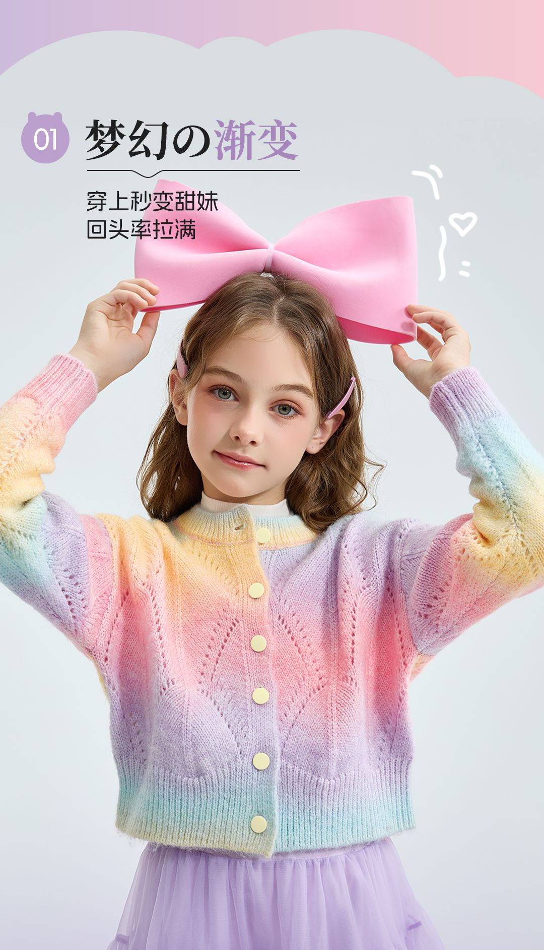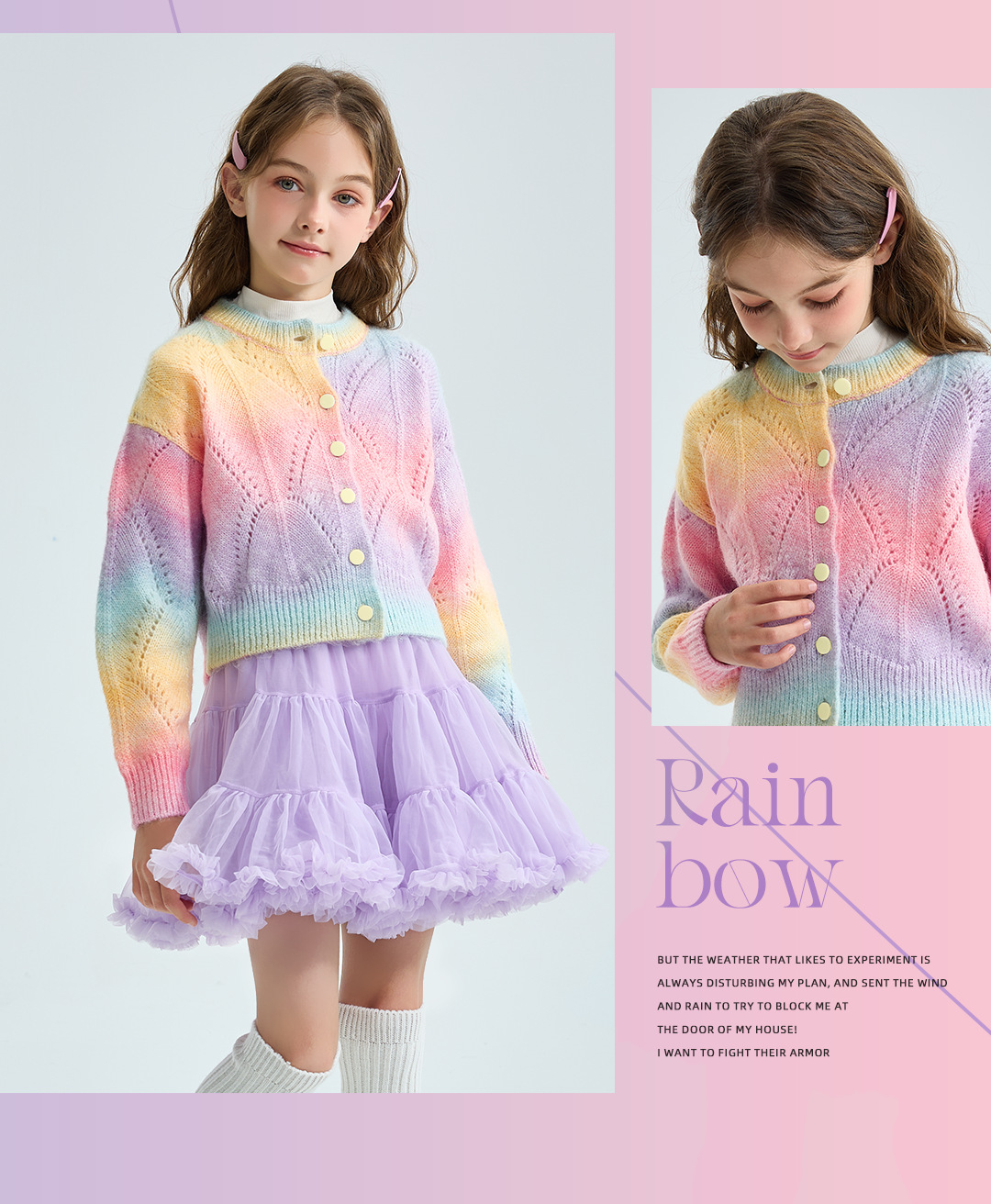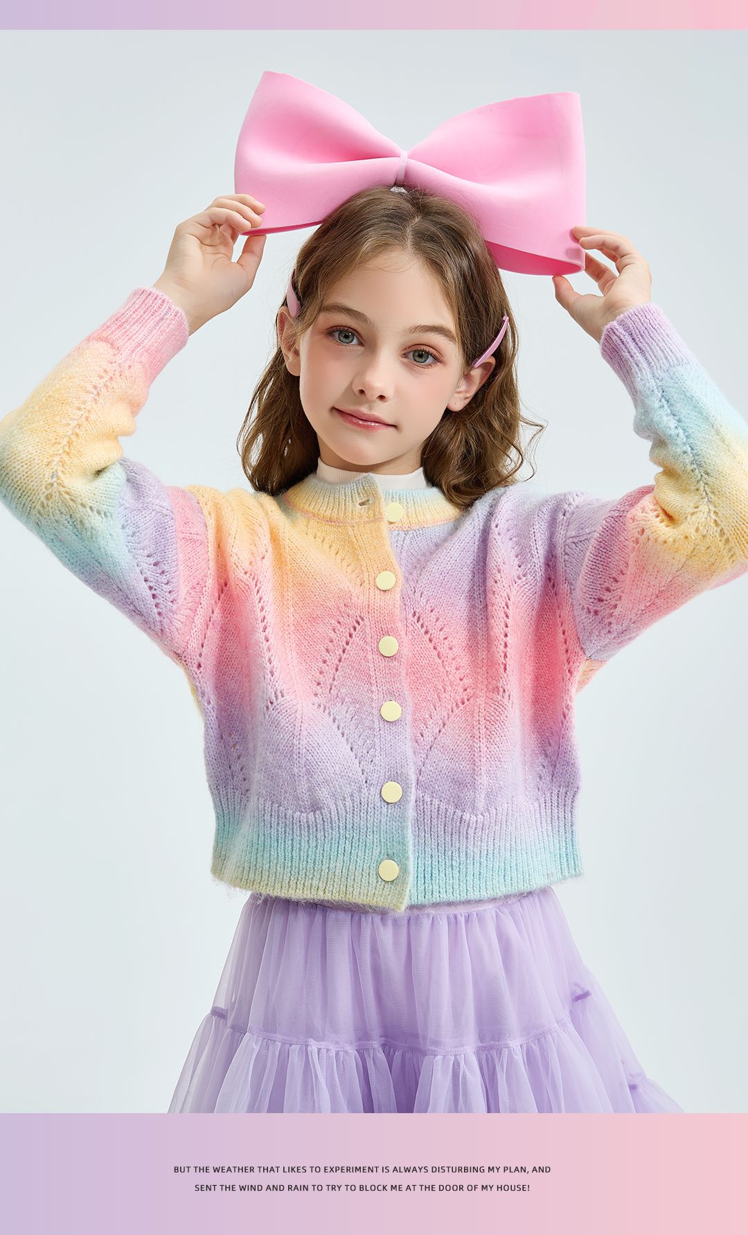 여자 스웨터 봄 그라디언트 컬러 카디건 스웨터 2025 새로운 어린이 무지개 스웨터 제조 업체 도매