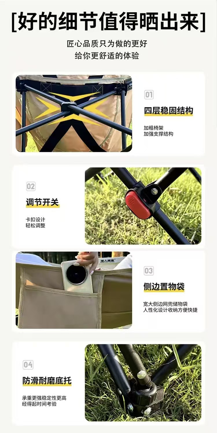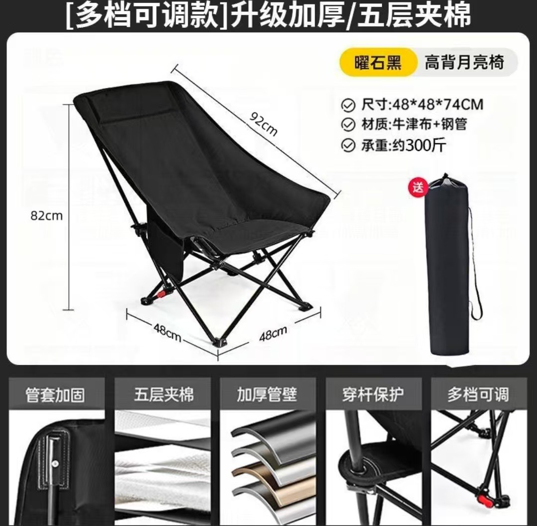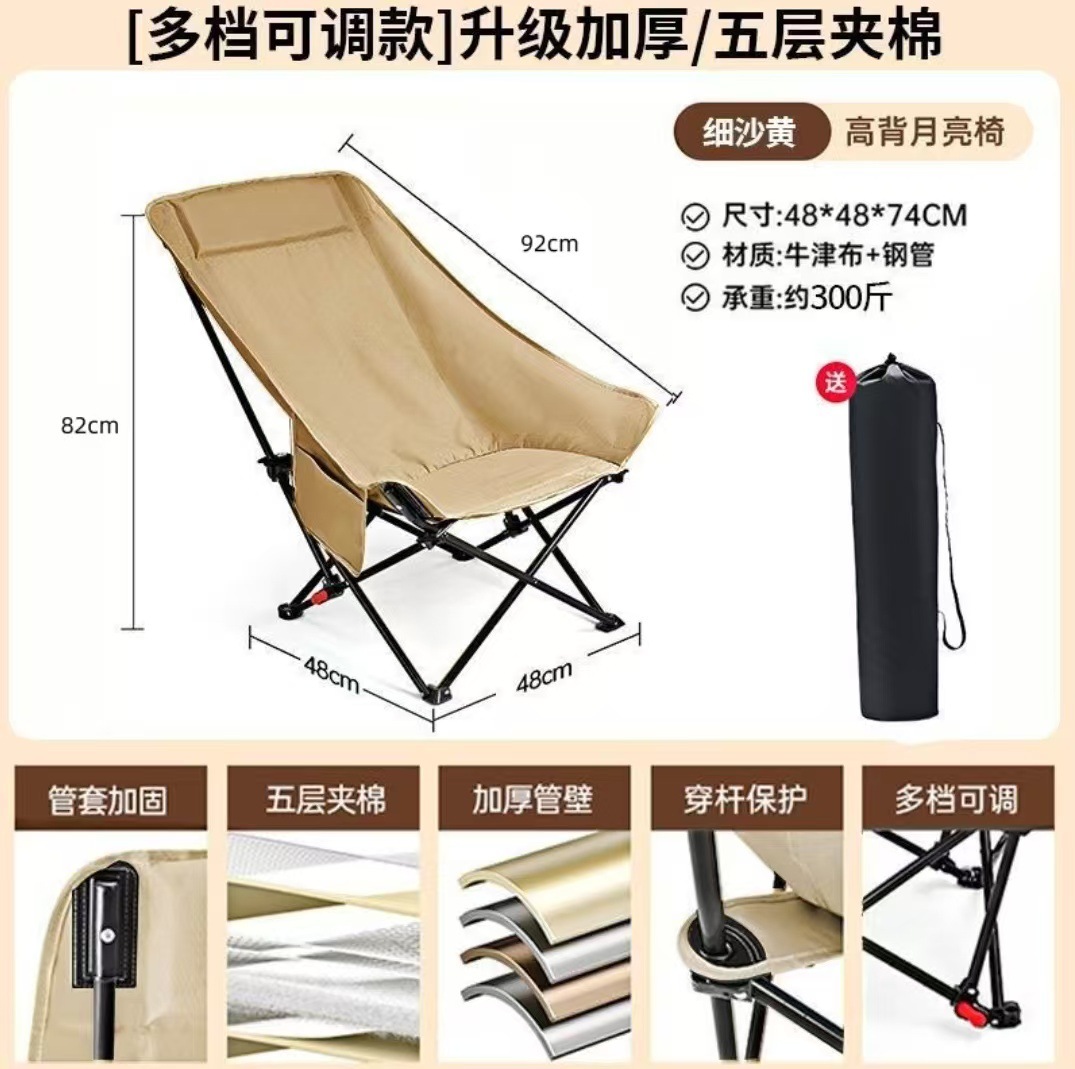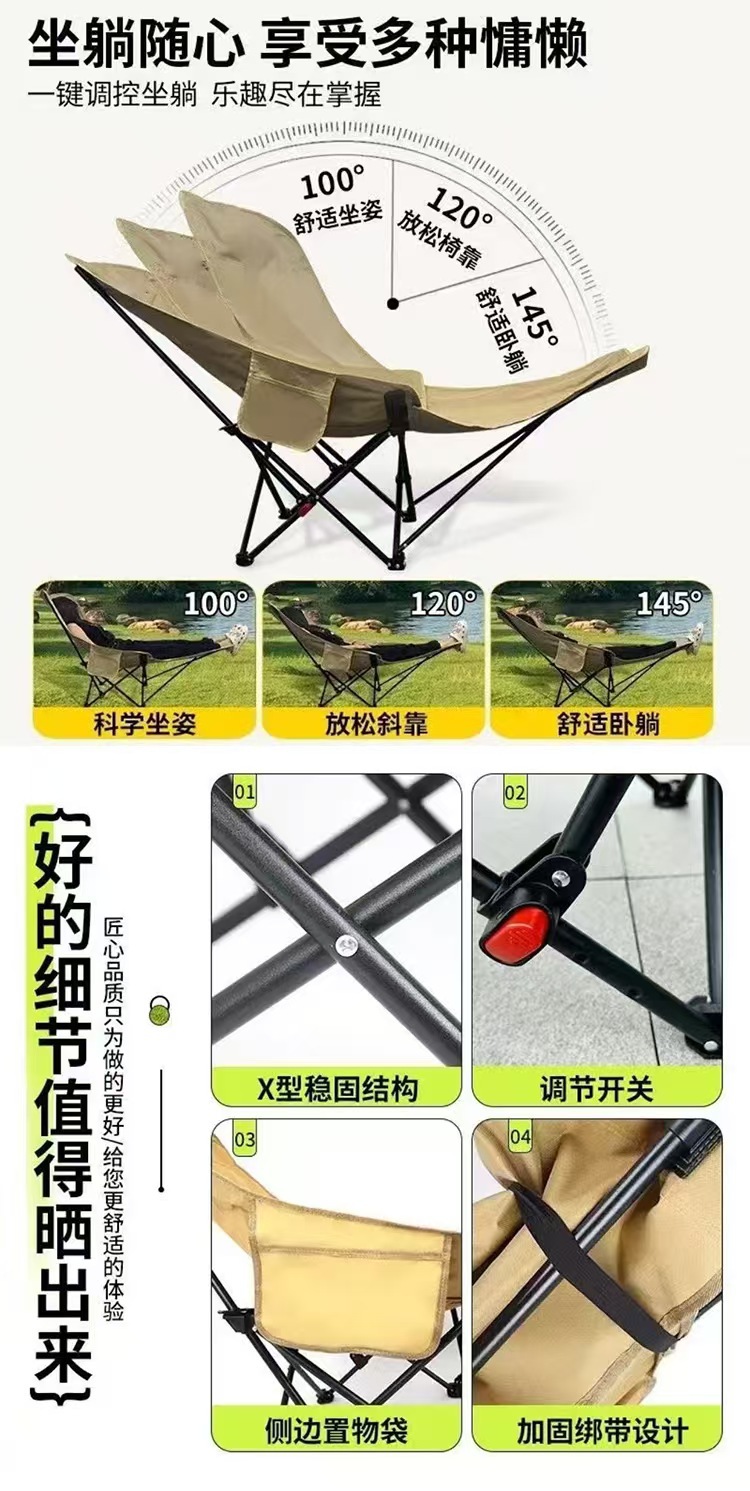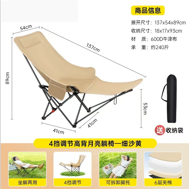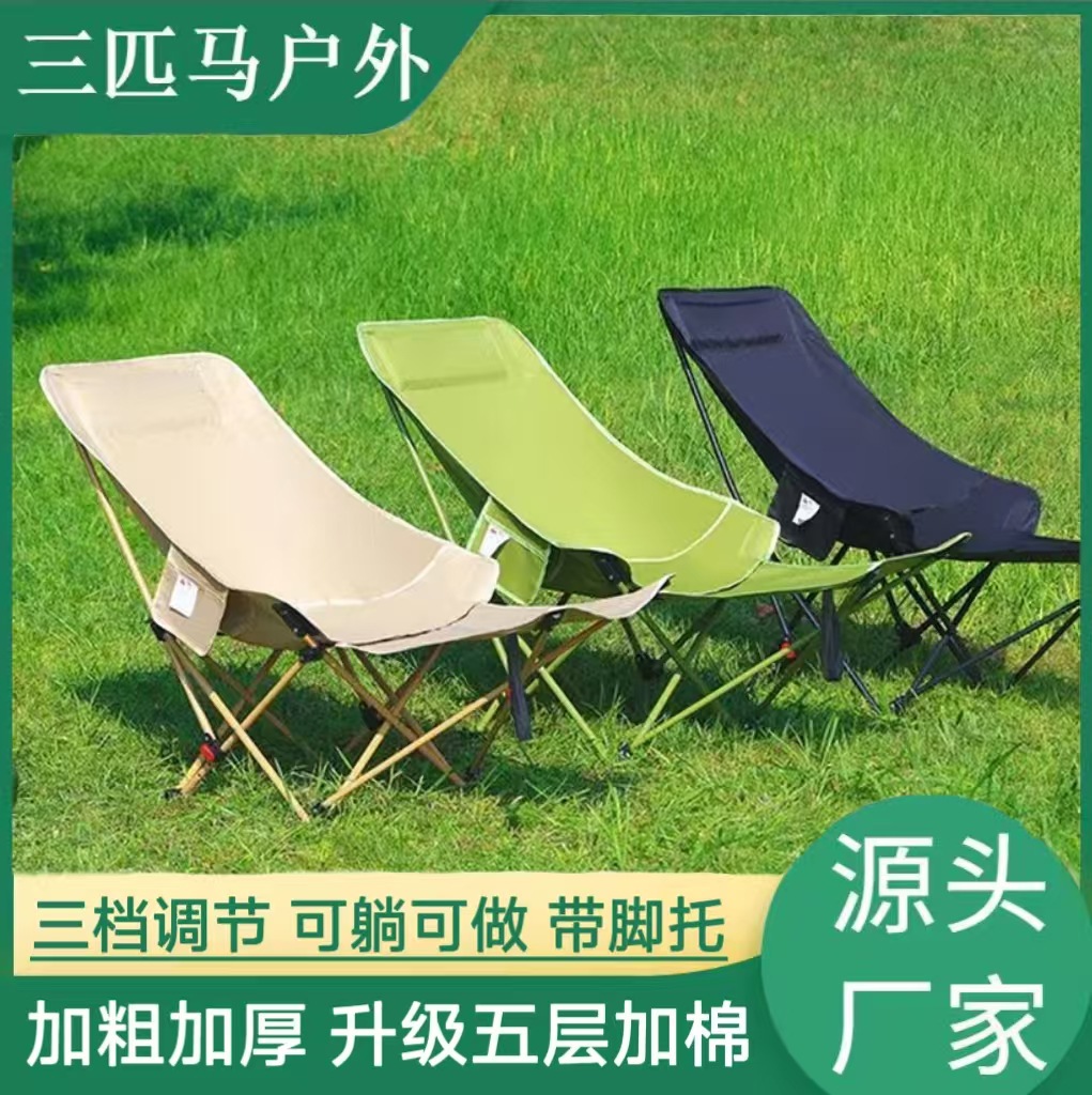 야외 접이식 의자 3 기어 조정 높은 뒷문 의자 발 리클라이닝 휴대용 접이식 라이너 바베큐 낚시 의자