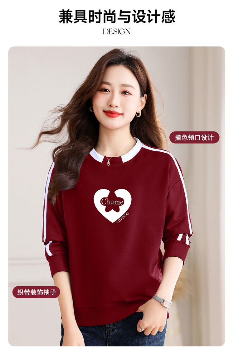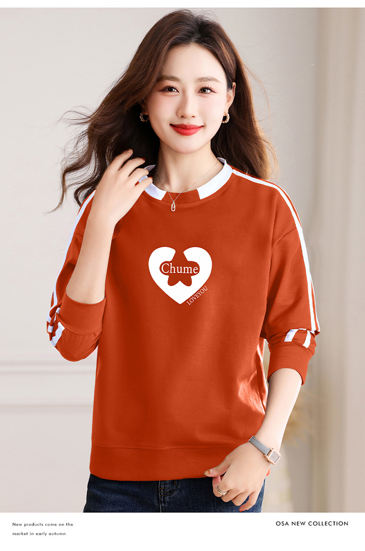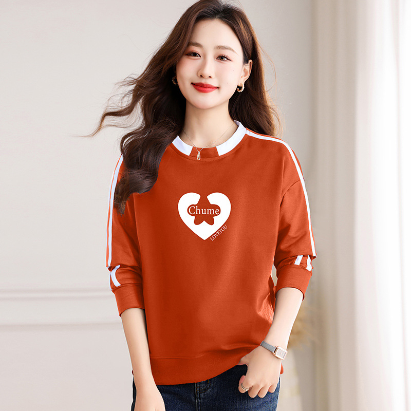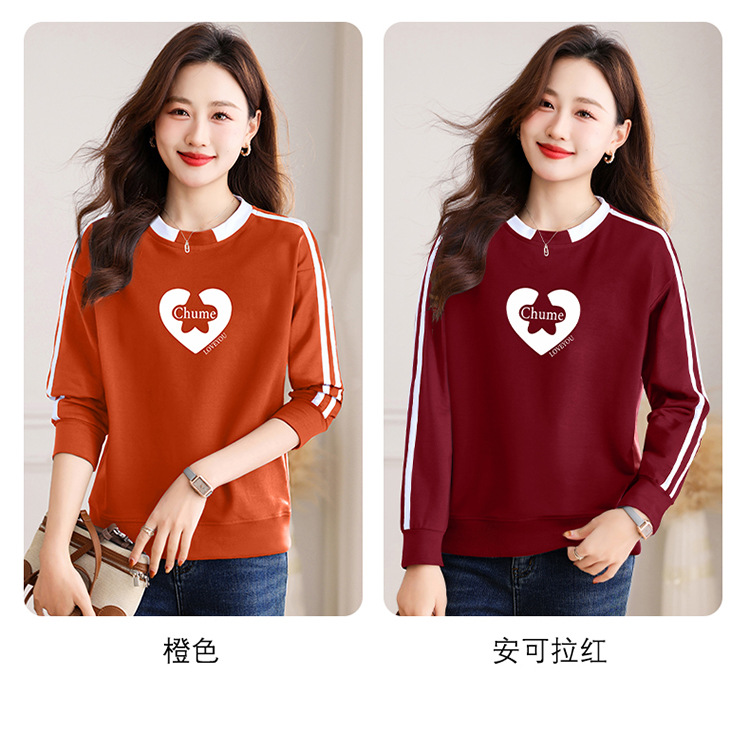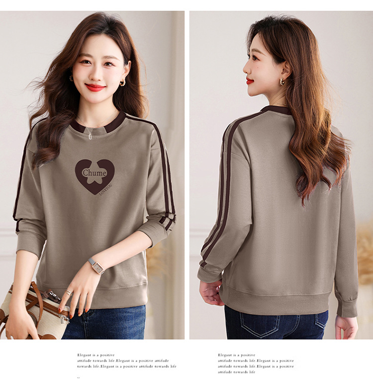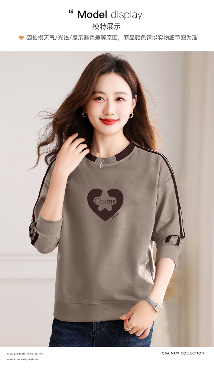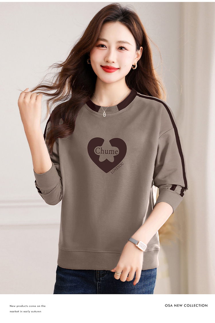 크메르 패션 캐주얼 삽입 컬러 블록 인쇄 된 콘트라스트 컬러 크루 넥 스웨터 여성의 봄과 가을 서양 스타일 중년 어머니 티셔츠스토어 가기