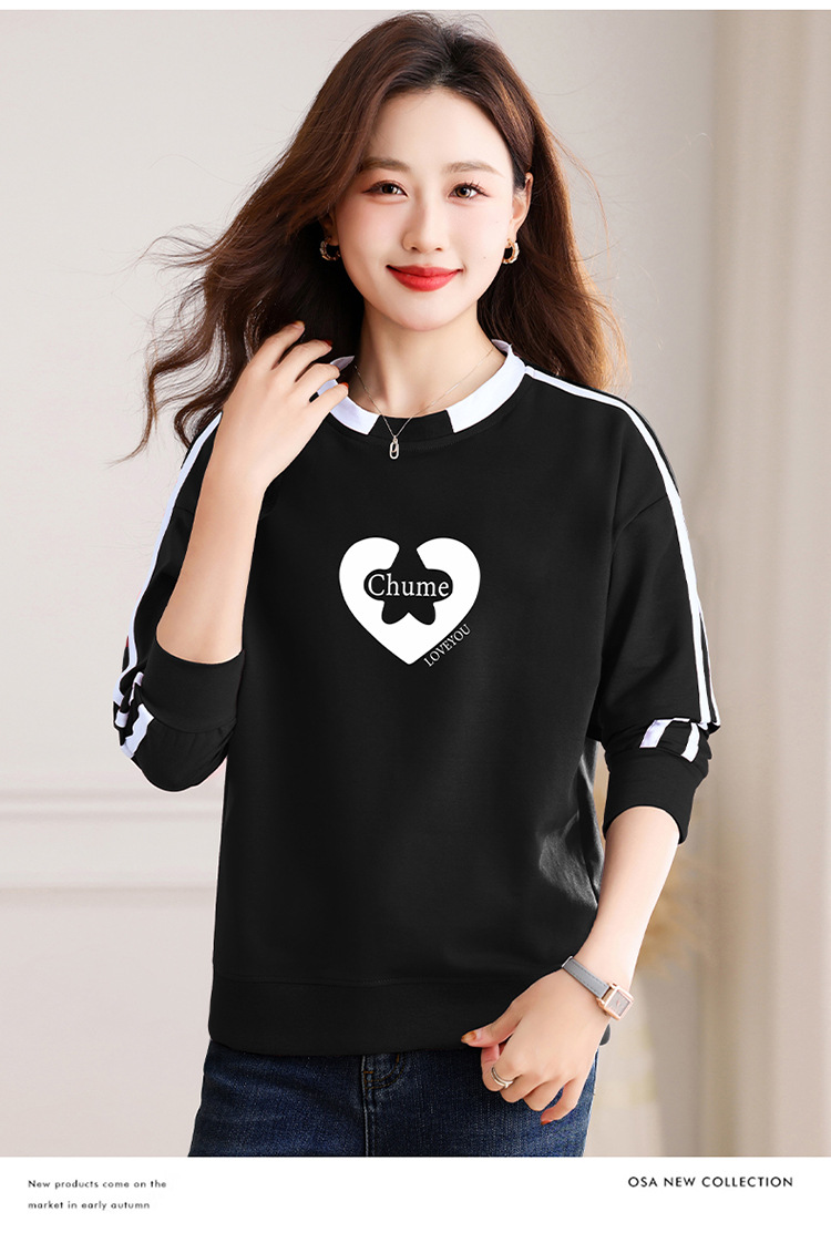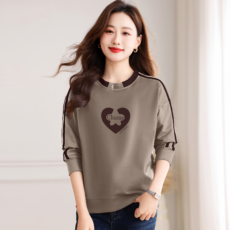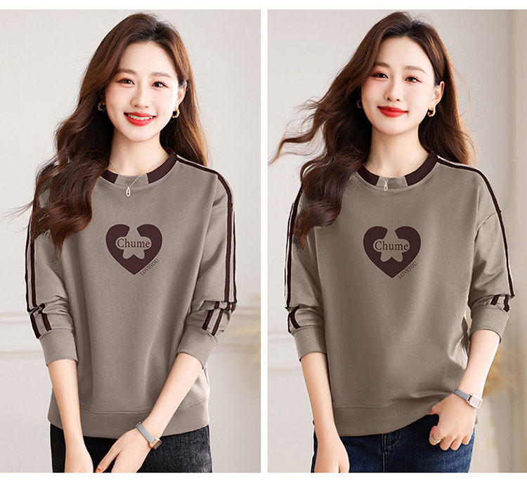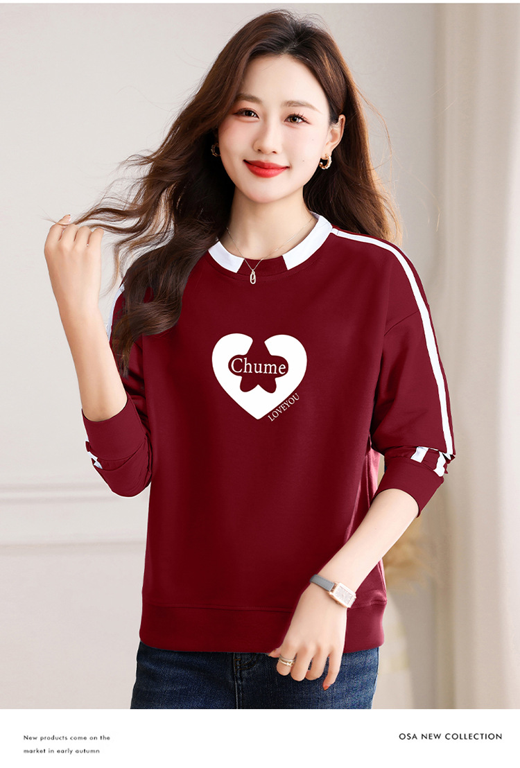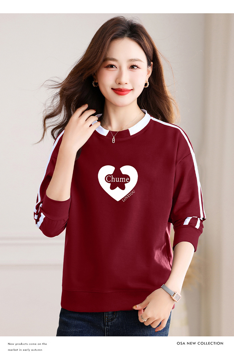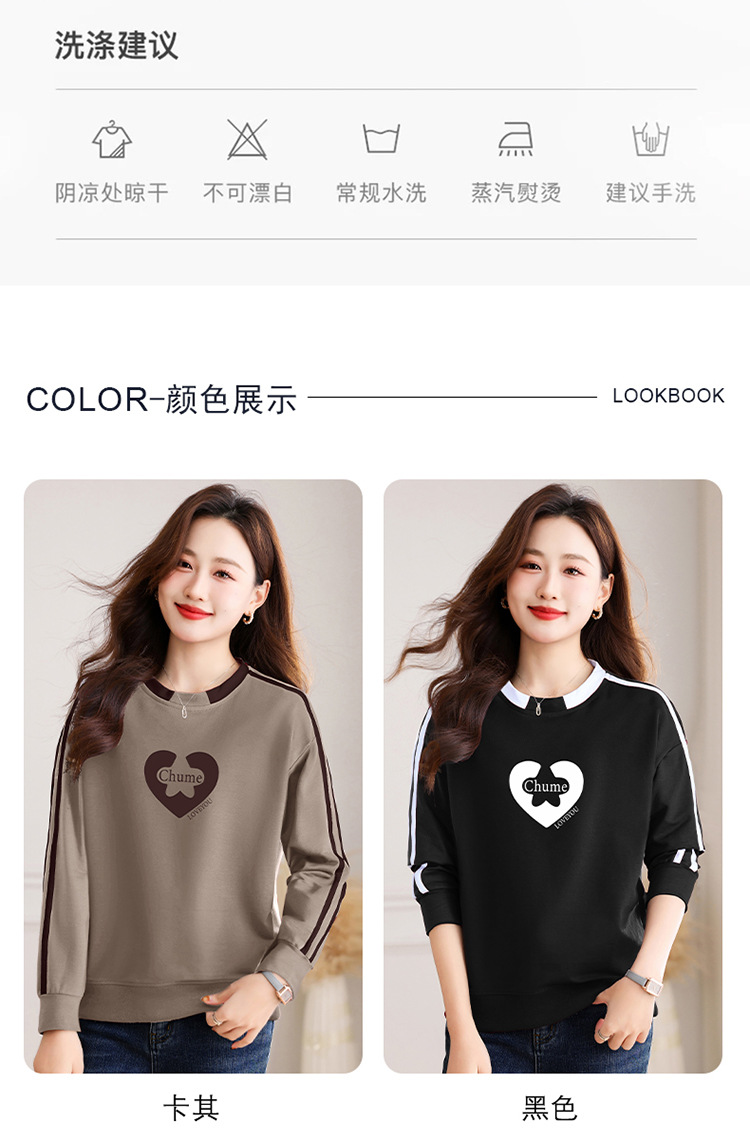 크메르 패션 캐주얼 삽입 컬러 블록 인쇄 된 콘트라스트 컬러 크루 넥 스웨터 여성의 봄과 가을 서양 스타일 중년 어머니 티셔츠스토어 가기
